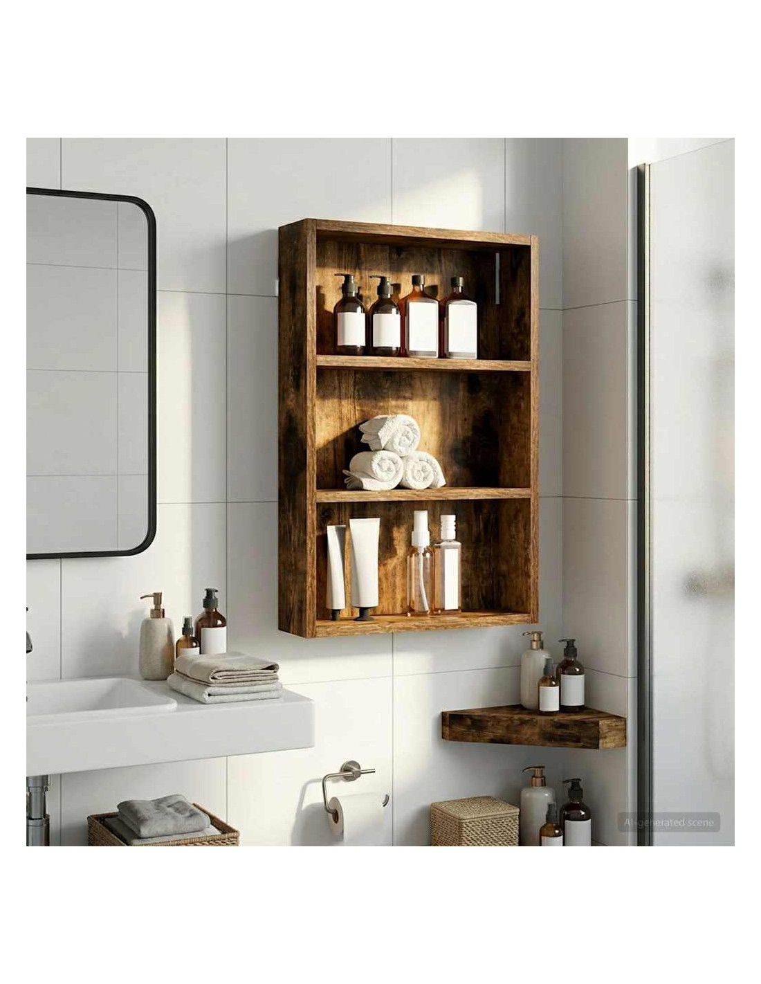 Questo mobiletto bagno moderno è la soluzione ideale per chi cerca uno stoccaggio elegante e minimalista. Il design a muro è perfetto per bagni piccoli dove lo spazio è limitato, rendendolo un'ottima scelta per case moderne. Le linee pulite e la forma rettangolare migliorano ogni stile d'arredamento, fungendo da elemento pratico e bello da vedere. Materiali: Realizzato in legno ingegnerizzato, è robusto e resistente all'umidità, mantenendo un aspetto estetico gradevole e moderno. Componenti inclusi: Include ripiani pratici, perfetti per riporre vari articoli da bagno con facilità, tenendoli a portata di mano. Caratteristiche / Funzione / Design: Questo mobiletto a muro è studiato per ottimizzare lo spazio, aggiungendo ampie possibilità di stoccaggio senza ingombrare il pavimento. Usi consigliati: Ideale per bagni che necessitano di maggiore spazio di stoccaggio, perfetto per asciugamani, articoli da toeletta e altre necessità. Si inserisce bene in spazi compatti. Manutenzione: Pulisci le superfici con un panno umido e usa prodotti delicati per preservarne la qualità e il design nel tempo.