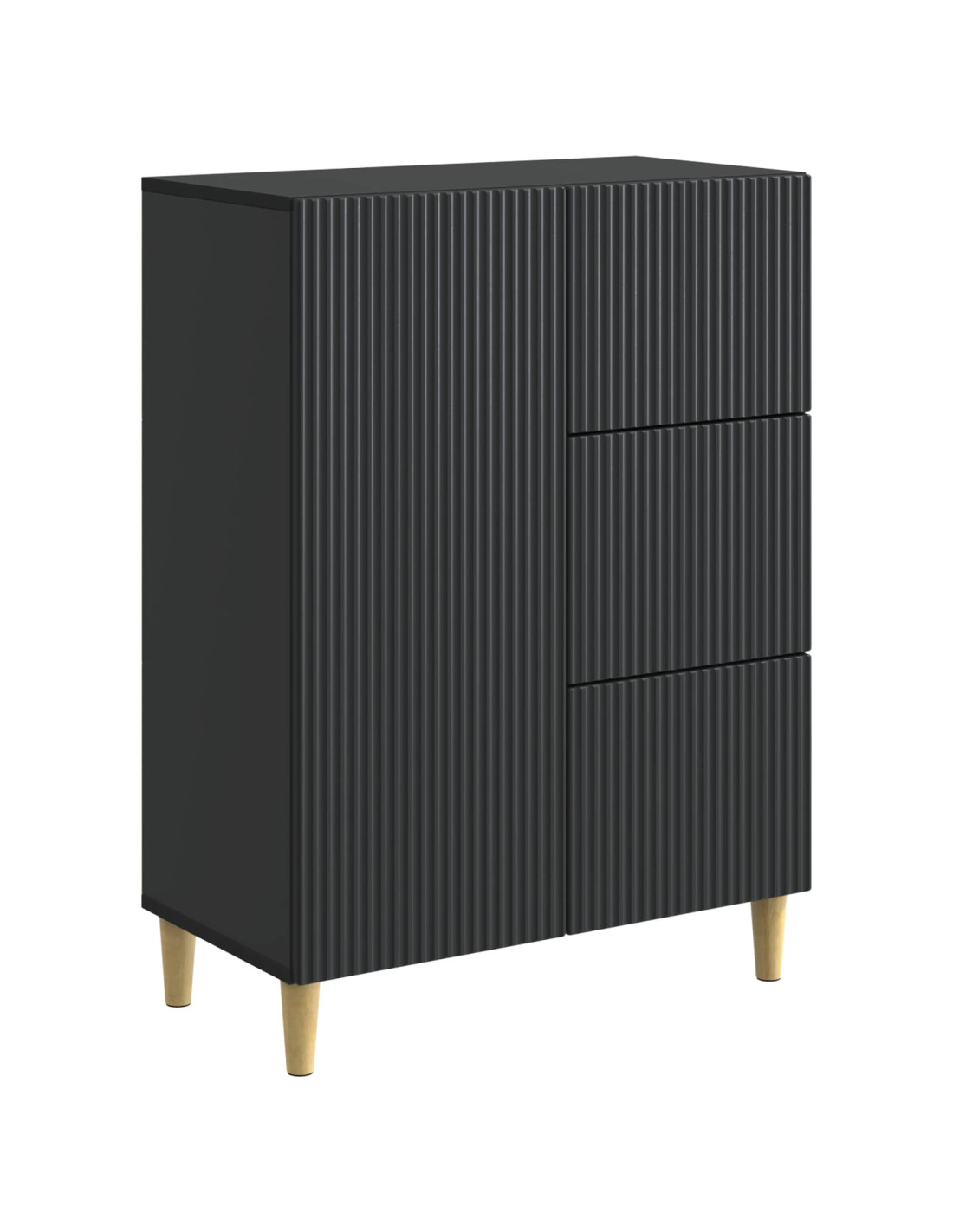 Questa Credenza Moderna è un pezzo ben fatto per chi ama lo stile vintage. Si integra alla perfezione negli spazi living o dining, dando un bel senso retro che si abbina sia al décor moderno che a quello tradizionale. Grazie alla solida struttura, non è solo un elemento d'arredo ma pure super pratica, perfetta per chi cerca un buon equilibrio tra stile e funzionalità. Costruzione in legno ingegnerizzato: Questa credenza è tutta in legno ingegnerizzato, conosciuto per la sua solidità e la finitura liscia. Questo materiale assicura stabilità e durata, evitando deformazioni nel tempo, mentre copia l'eleganza delle venature del legno classico. Spaziosa capacità di archiviazione: La credenza ha comparti ampi, scaffali in legno ingegnerizzato e cassetti ideali per riporre stoviglie, libri e altri essenziali. Il design ben studiato fa sì che tutto sia facilmente accessibile e ben organizzato. Gambe rastremate vintage: L'unità è sostenuta da gambe rastremate, che le danno una leggera elevazione e un tocco vintage elegante. Queste gambe offrono stabilità e creano un profilo chic adatto agli arredi moderni. Configurazione dei compartimenti versatile: Progettata per soddisfare diverse esigenze di archiviazione, i suoi scaffali e le aree compartimentate offrono molta versatilità, rendendola perfetta per articoli di varie dimensioni e pesi. Manutenzione pratica: Pulire è facile: basta usare un panno umido per mantenerla bella. La superficie in legno ingegnerizzato è trattata in modo che polvere e macchie quotidiane siano facili da gestire, ideale per un uso prolungato.