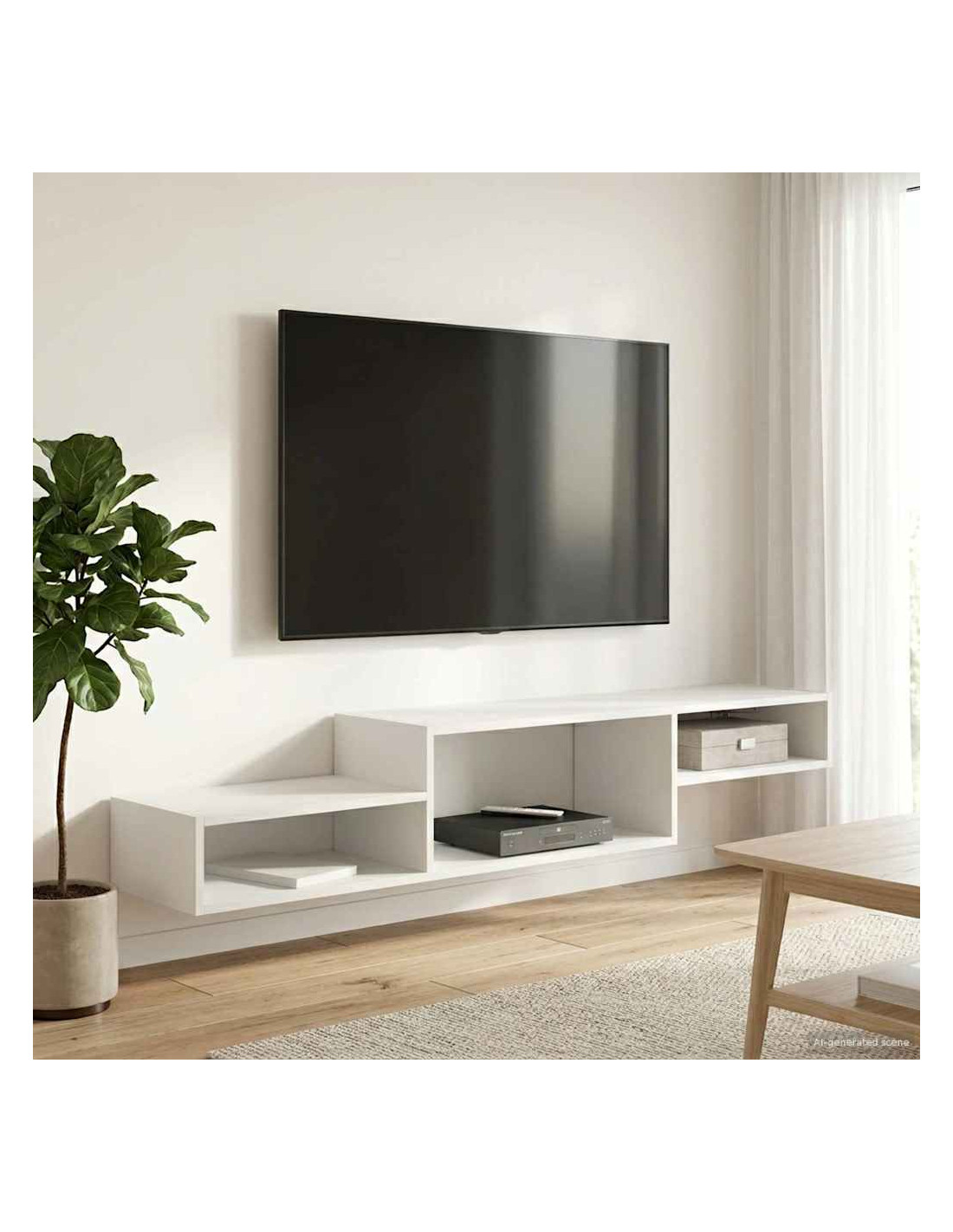 Il nostro mobile TV a parete è pensato per ottimizzare il tuo spazio e offre una soluzione di stoccaggio dalla forma snella. È perfetto per stanze dove c'è poco spazio a pavimento, assicurando un aspetto ordinato e bello ovunque tu lo metta. Design moderno : Questo mobile TV ha un look moderno con linee semplici e pratiche. Si adatta bene a spazi contemporanei, portando sia stile che funzionalità. Costruzione robusta : È fatto di legno ingegnerizzato resistente, perciò è robusto e duraturo. Promette di stare bene in qualsiasi parte della casa. Soluzione di stoccaggio ottimale : Con tanto spazio per riporre tutto, questo mobile ti aiuta a tenere in ordine i tuoi dispositivi e oggetti personali, rendendo l'area living più serena. Installazione salvaspazio : Montandolo a muro, risparmi spazio sul pavimento, facendo sembrare la stanza più grande e aperta. È perfetto per appartamenti piccoli. Facile da curare : Bastano un panno morbido e asciutto per mantenerlo pulito. Basta evitare sostanze chimiche aggressive per mantenere il suo look nel tempo.