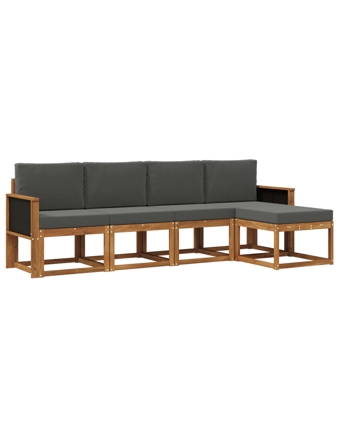 Questo set di divani sezionali da esterno è progettato per combinare stile e funzionalità, perfetto per giardini e terrazze moderni. Con linee eleganti e un design minimalista, è un'aggiunta raffinata che crea uno spazio lounge invitante per socializzare o rilassarsi. Il suo aspetto sofisticato è supportato da una costruzione solida, in grado di resistere alle intemperie, rendendolo versatile per ogni ambiente esterno contemporaneo. Materiali: Ogni pezzo è fatto in legno massello di acacia robusto, rinomato per la sua resistenza e durevolezza, che richiede poca manutenzione. La grana fine e il colore caldo del legno aggiungono un tocco lussuoso a qualsiasi spazio esterno. Componenti Inclusi: Braccioli, schienale e seduta sono realizzati in legno massello di acacia, con una colorazione marrone uniforme che offre un aspetto coeso e confortevole. Il design a doghe favorisce il drenaggio dell'acqua e arricchisce il look. Caratteristiche/ Funzione/ Design: Il design a doghe migliora la circolazione dell'aria, garantendo comfort anche nei giorni più caldi. La sua funzionalità si adatta ai vari arrangiamenti, aumentando la flessibilità del tuo spazio esterno con facilità. Usi Consigliati: Creato per l'uso all'aperto, questo set di divani è perfetto per giardini, terrazze e spazi lounge all'aperto. È ideale per feste o per momenti di relax con amici e famigliari, adattandosi bene a diversi stili di arredo esterno. Manutenzione e Cura: L'assemblaggio richiede due persone e un cacciavite, seguendo le istruzioni per una corretta messa in sicurezza. Per mantenerlo in ottimo stato, pulisci con un panno asciutto e coprilo durante i temporali.