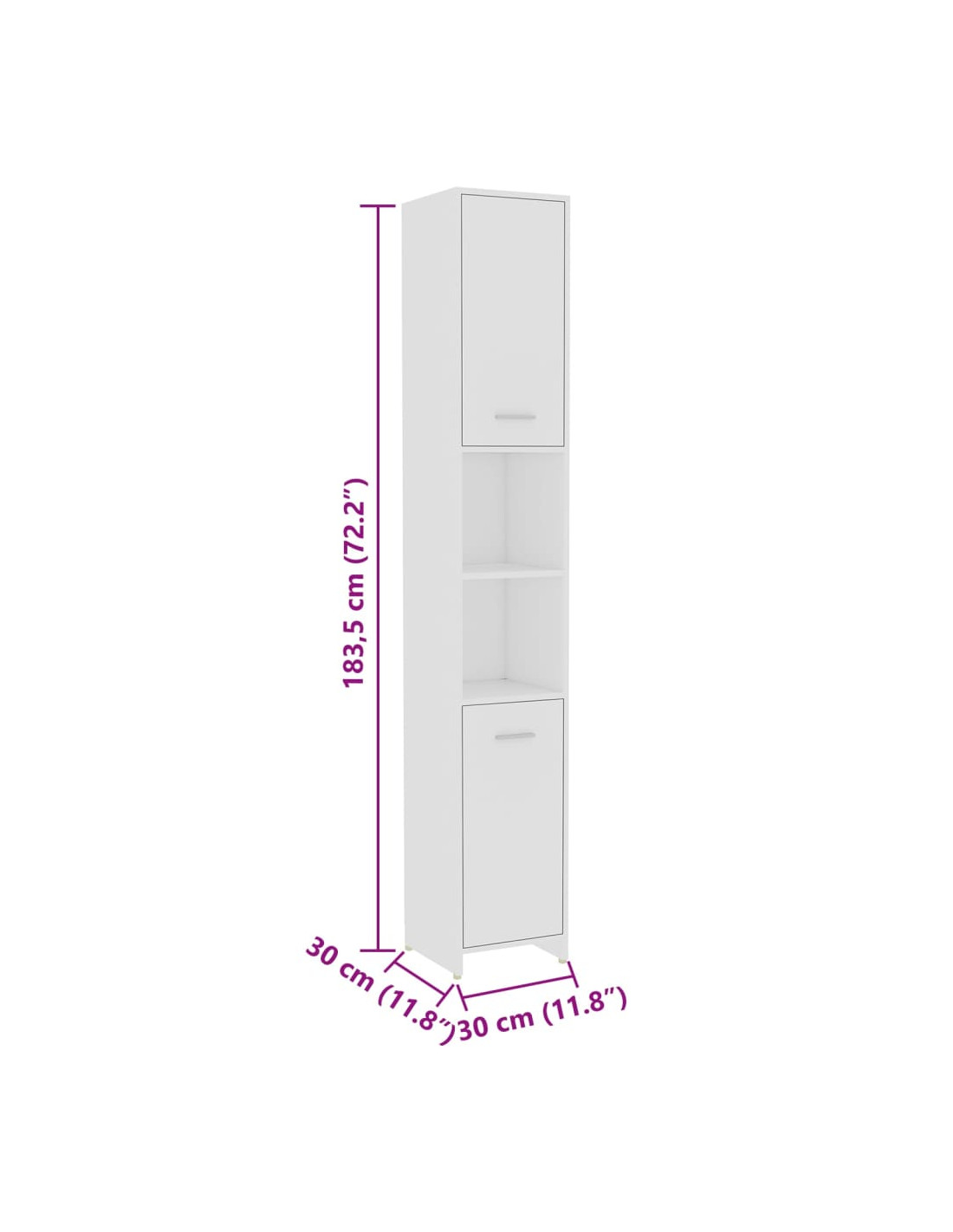 - Dimensioni mobile alto: 30 x 30 x 183,5 cm (L x P x A)