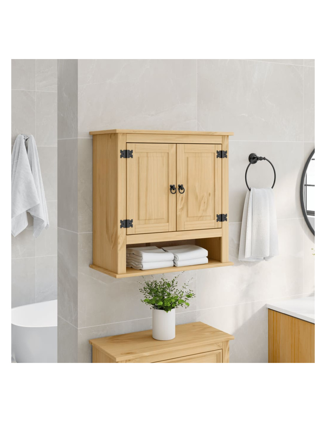 - Facile da usare: Il mobile a parete è dotato di maniglie in metallo che facilitano l'apertura e la chiusura delle ante, aggiungendo ulteriore bellezza.
