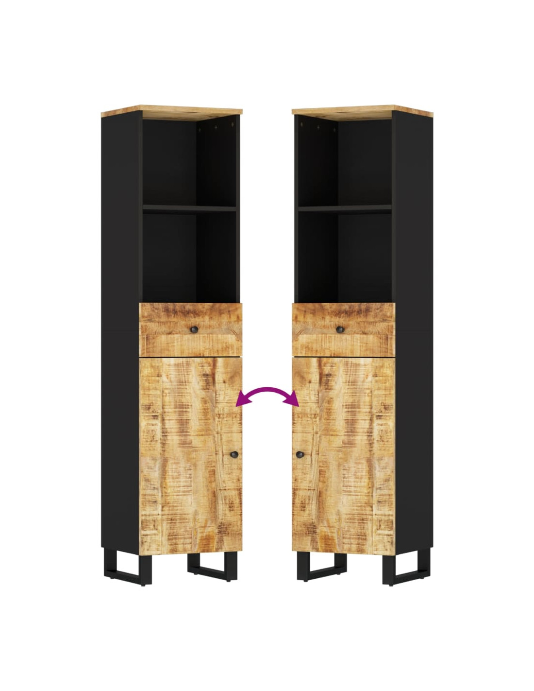 - Legno massello di mango: Il mobile è realizzato in legno massello di mango combinato con il legno multistrato. Il legno massello di mango è un legno duro tropicale resistente, che dà vita a mobili robusti. Le belle venature del legno rendono ogni pezzo d'arredamento leggermente diverso dall'altro.