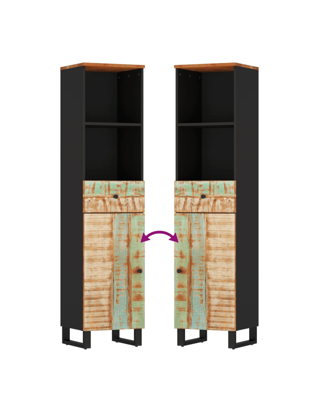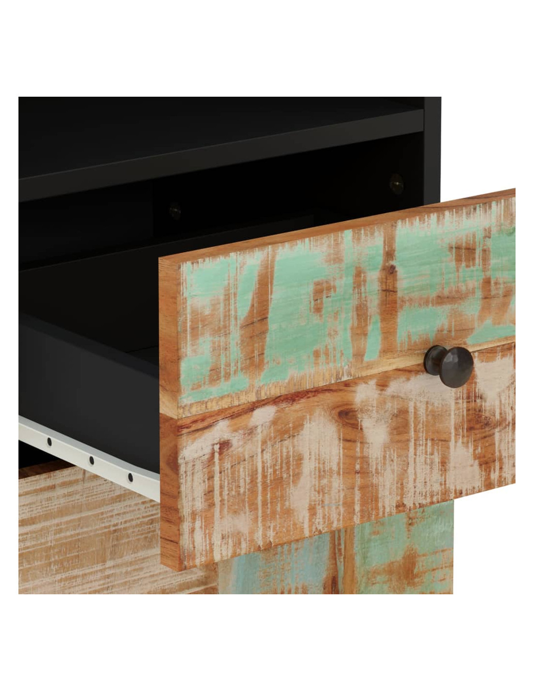 - Legno massello di recupero: Questo mobile è realizzato in legno massello di recupero combinato con il legno multistrato. Il legno massello di recupero è costituito da legni riutilizzati quali il teak, il legno di mango, il legno di pino, e il faggio. Questi materiali sono riciclati da vecchi immobili come fabbriche, capannoni e barche.