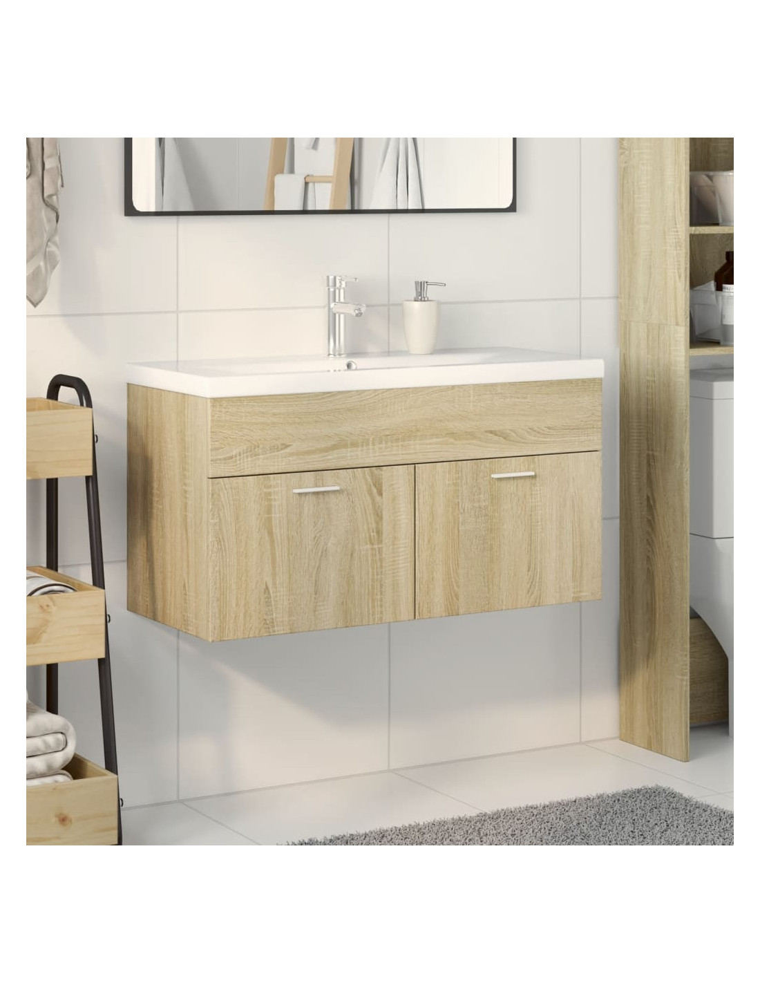 Questo elegante mobile con lavabo integrato, dotato di ampio spazio di stoccaggio, è un'ottima aggiunta al vostro bagno e conferisce un aspetto ordinato e suggestivo!