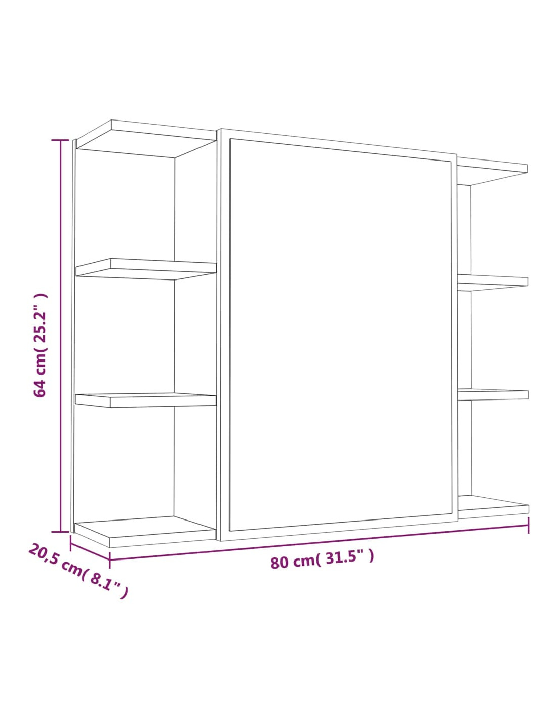 - Dimensioni mobile a muro con specchio: 80 x 20,5 x 64 cm (L x L x A)