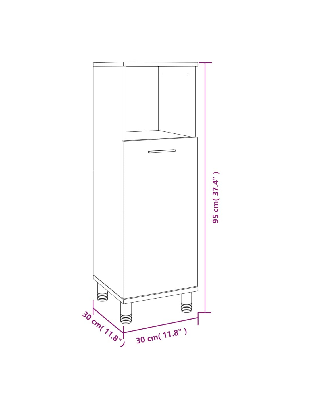 - Dimensioni armadietto autoportante: 30 x 30 x 95 cm (L x L x A)
