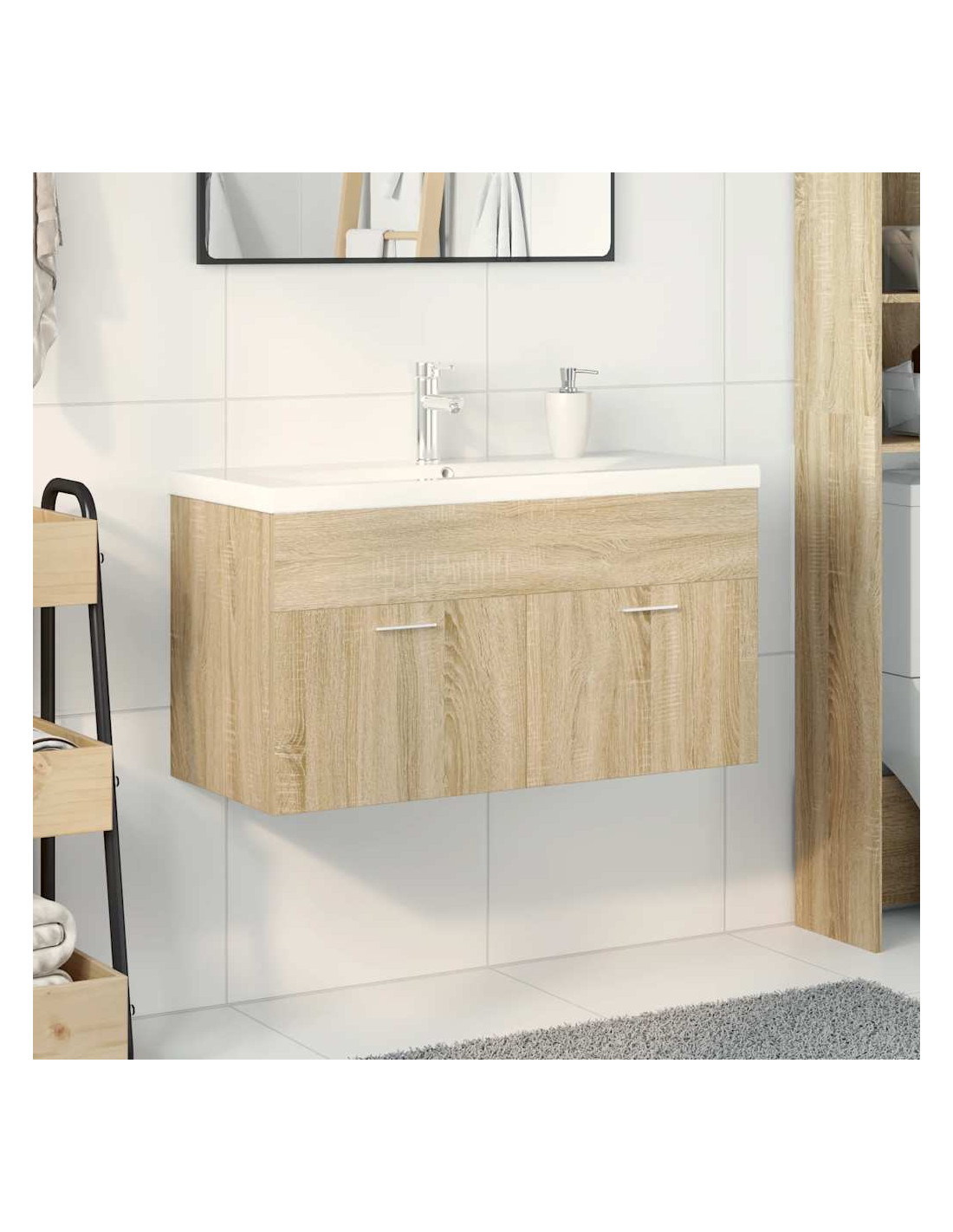 - Design salvaspazio: La parte superiore del mobile da bagno è ideale per posizionare il lavabo, in modo da poter sfruttare appieno lo spazio libero sotto il lavabo.