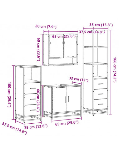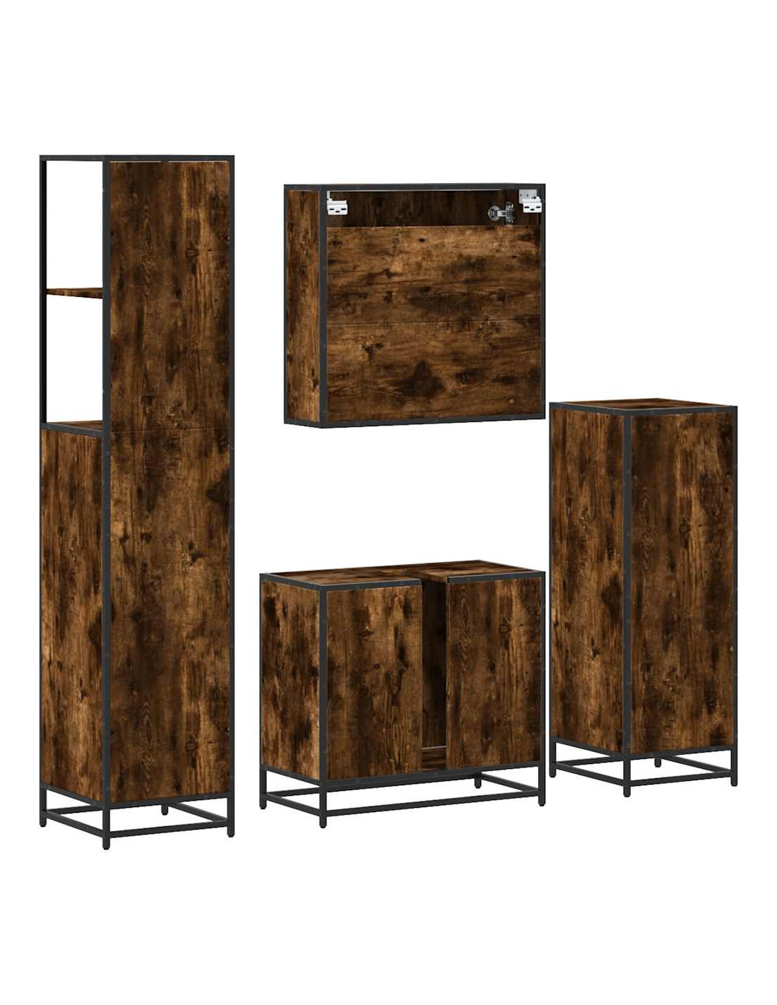 Set Mobili da Bagno 4 pz Rovere Fumo in Legno Multistrato