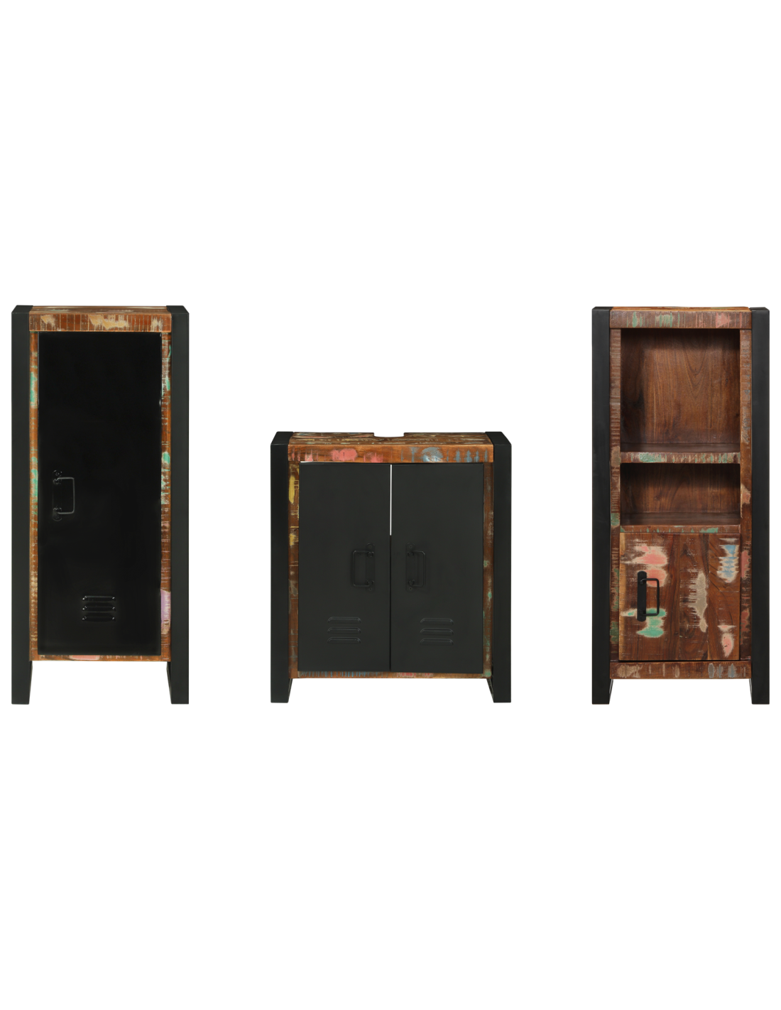 - Materiali: Questo set di mobili è composto da porte in legno massello e componenti in ferro robusti, assicurando longevità e stabilità. La qualità dei materiali fa sì che il set resista all'uso quotidiano rimanendo sempre accattivante, rendendolo un'ottima scelta per il tuo bagno.