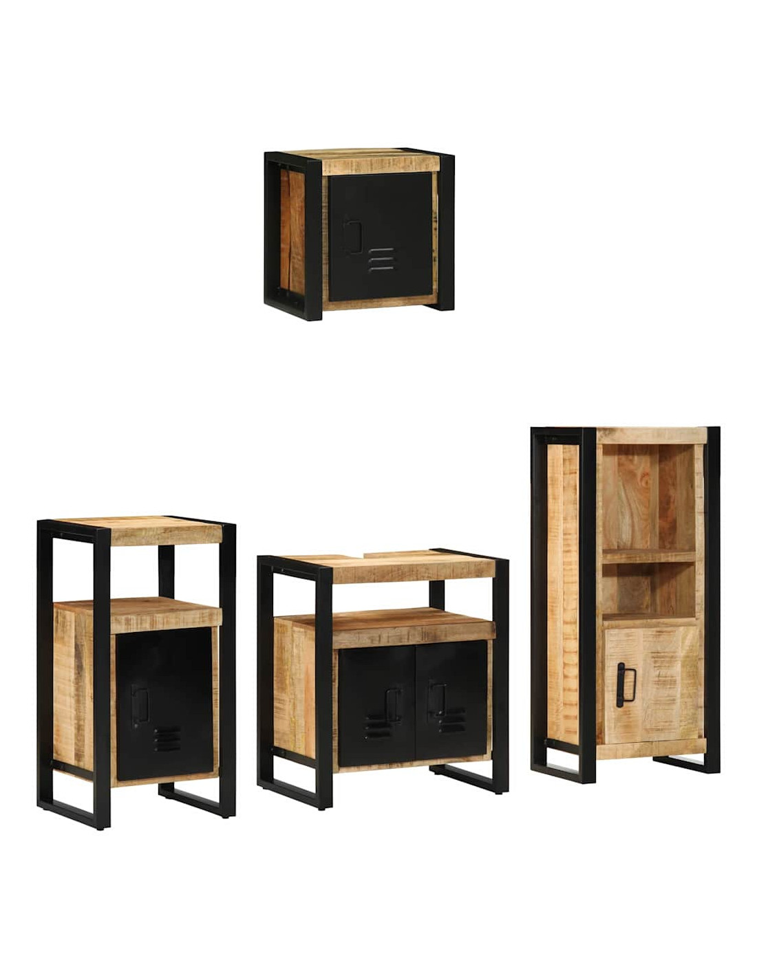 - Componenti Inclusi: Il set è composto da quattro pezzi: due armadietti da bagno (55x35x60 cm e 40x35x75 cm) e due armadietti da parete (40x30x90 cm e 40x30x40 cm). Ogni pezzo è progettato per offrire spazio di archiviazione, mantenendo tutto organizzato.