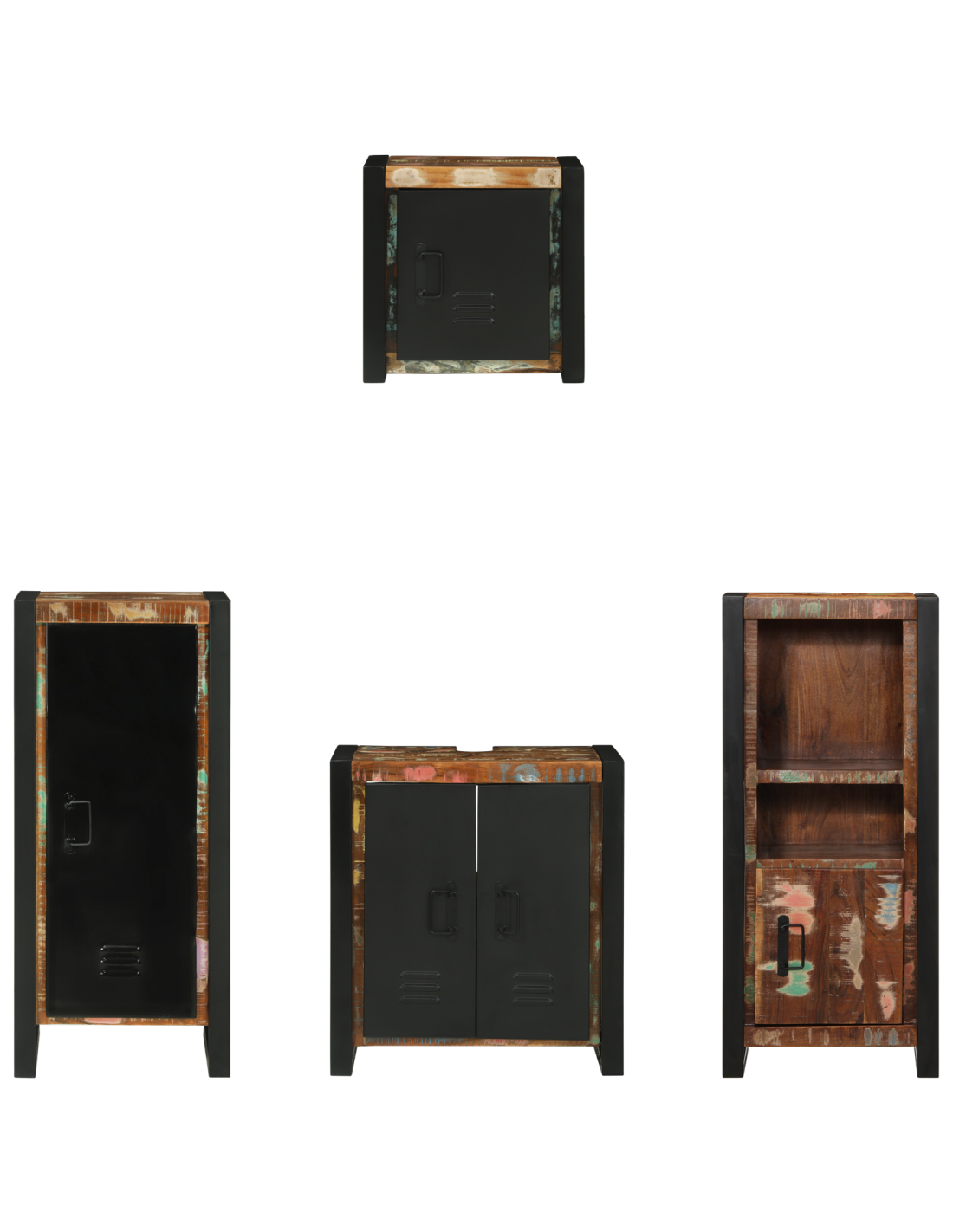 - Componenti del set completi Include due armadietti da bagno di dimensioni 55 x 35 x 60 cm e 40 x 35 x 90 cm, più due armadietti da parete di 40 x 30 x 90 cm e 40 x 30 x 40 cm, per soluzioni di stoccaggio flessibili.