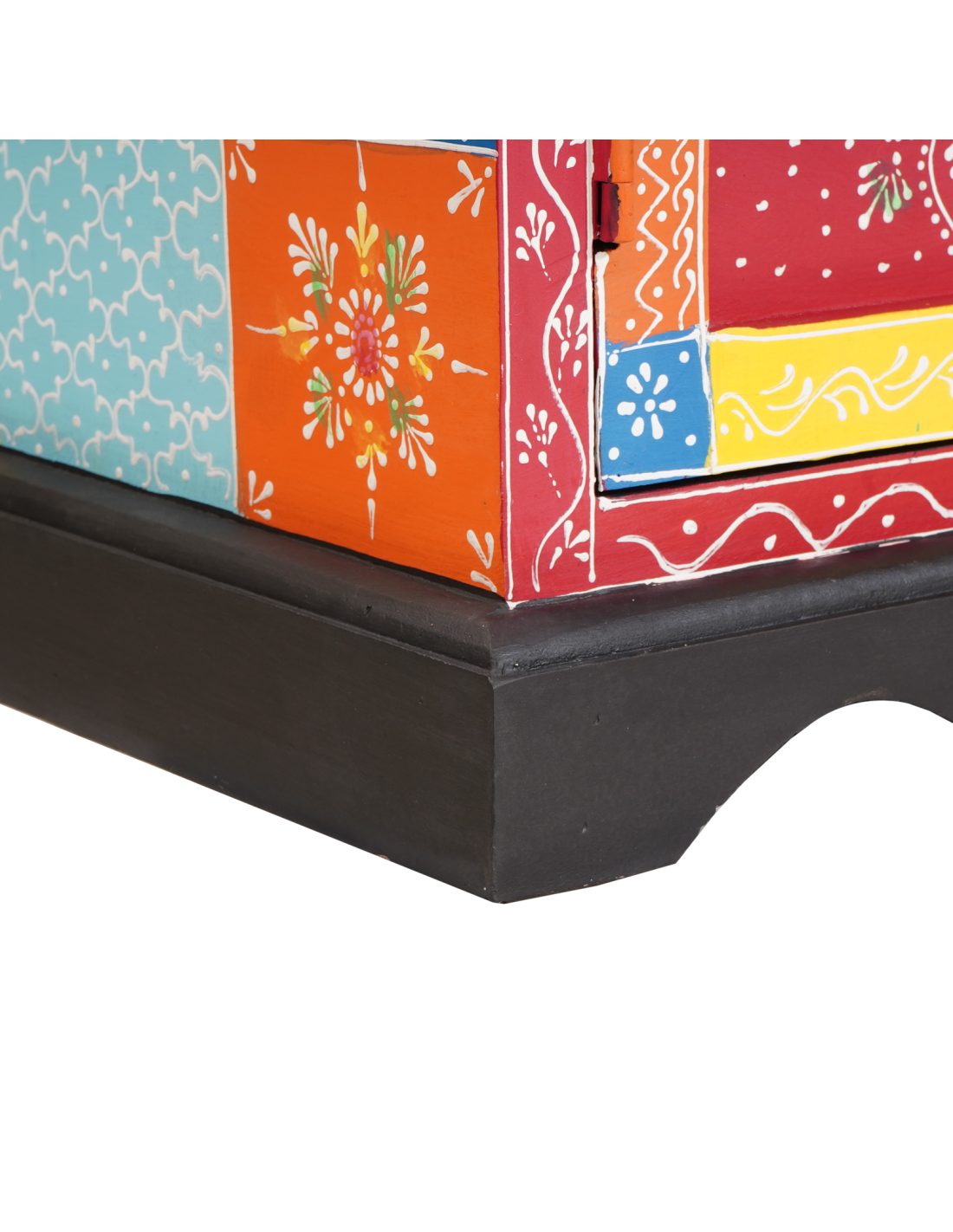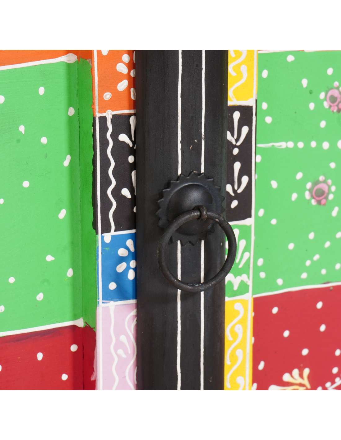 - Porte e maniglie eleganti Le porte in legno massello di mango sono disegnate per un aspetto uniforme. Ogni porta ha maniglie a tirare, facili da usare, che aggiungono un tocco di stile. I colori caldi del legno di mango contrastano con le maniglie nere, creando un look accogliente e raffinato.