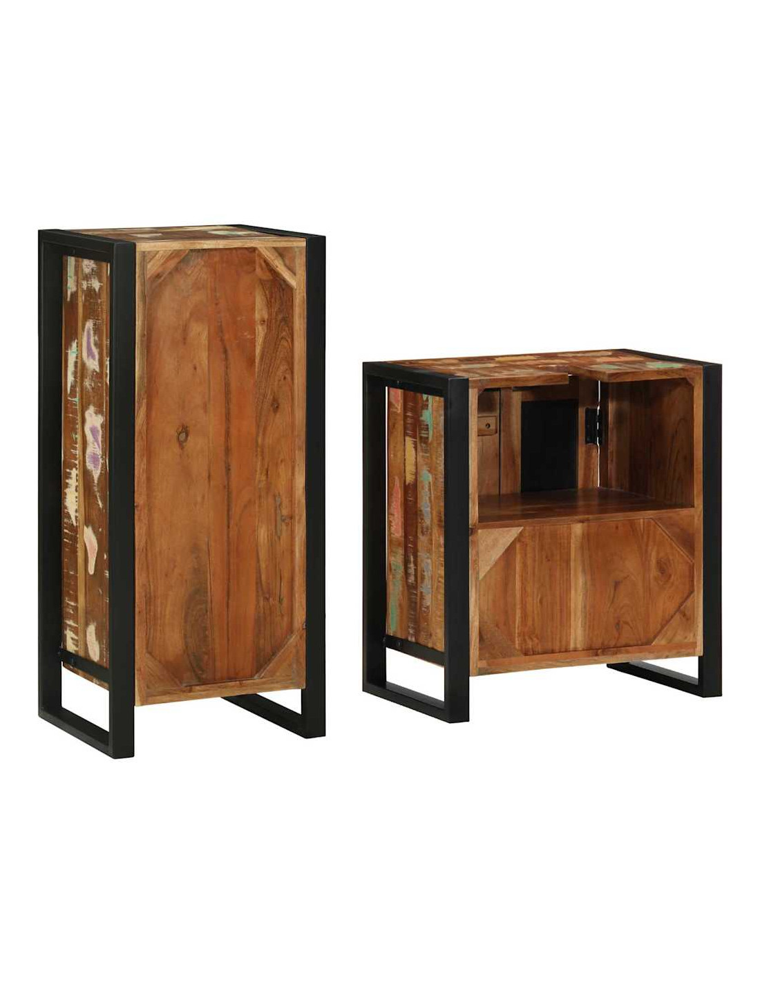 - Funzionalità: Con porte che si aprono facilmente e mensole salvaspazio, questo set è progettato per l'uso quotidiano. Il suo stile industriale lo rende un ottimo punto focale che si inserisce bene in ogni tipo di design del bagno.