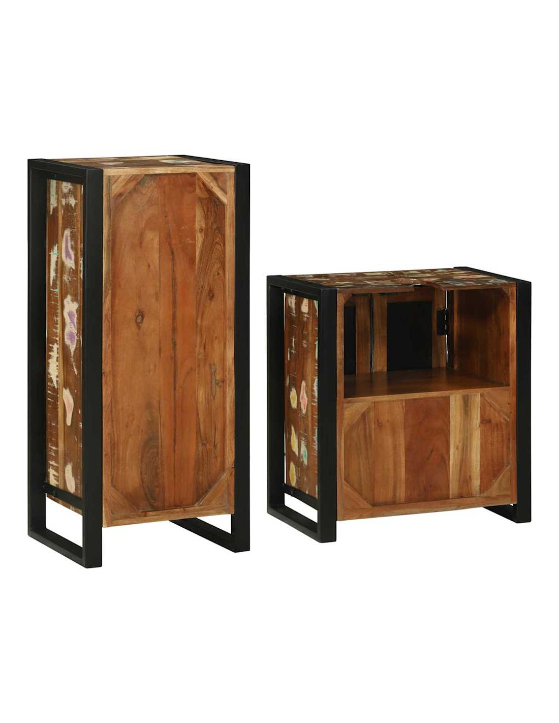 Il set di mobili per il bagno in legno è un'aggiunta stilosa che risolve i tuoi problemi di stoccaggio. Il suo vibe rustico, con toni neri e marroni, crea un'atmosfera trendy ma naturale. Diventerà sicuramente il pezzo forte del tuo bagno, offrendo uno spazio comodo per tenere tutto in ordine. Che tu voglia dare un tocco di classe o avere uno stoccaggio pratico, questo set fa al caso tuo.