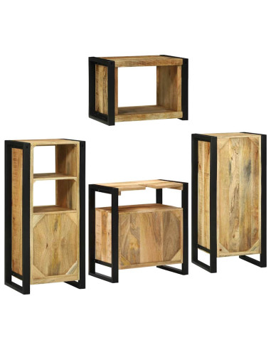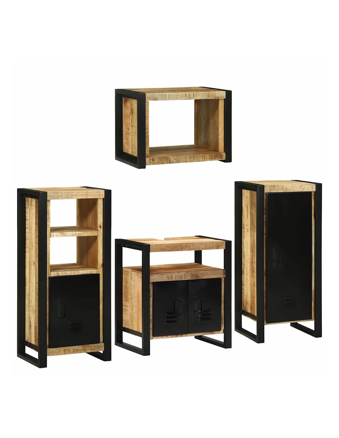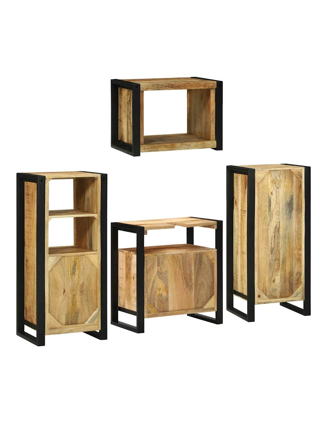 Questo set di mobili in legno è un perfetto mix di fascino rustico e design intelligente per ottimizzare lo spazio. Se vuoi sfruttare bene il tuo bagno mantenendo un look moderno, questo set è quello che fa per te. Tutto si basa su linee eleganti e finiture curate. Avrai diversi armadietti da parete con porte a filo, per un aspetto ordinato e organizzato, ideale per riporre i tuoi essenziali. Il retro è non rifinito e non pensato per essere visibile, ma si adatta facilmente a qualsiasi misura e stile di bagno, offrendoti praticità e una dose di bellezza visiva.