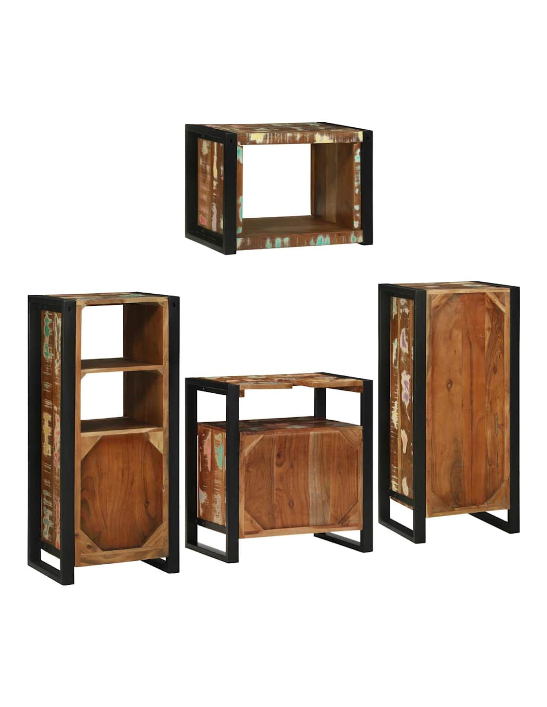 Questo set di mobili in legno è un perfetto mix di fascino rustico e design intelligente per ottimizzare lo spazio. Se vuoi sfruttare bene il tuo bagno mantenendo un look moderno, questo set è quello che fa per te. Tutto si basa su linee eleganti e finiture curate. Avrai diversi armadietti da parete con porte a filo, per un aspetto ordinato e organizzato, ideale per riporre i tuoi essenziali. Il retro è non rifinito e non pensato per essere visibile, ma si adatta facilmente a qualsiasi misura e stile di bagno, offrendoti praticità e una dose di bellezza visiva.