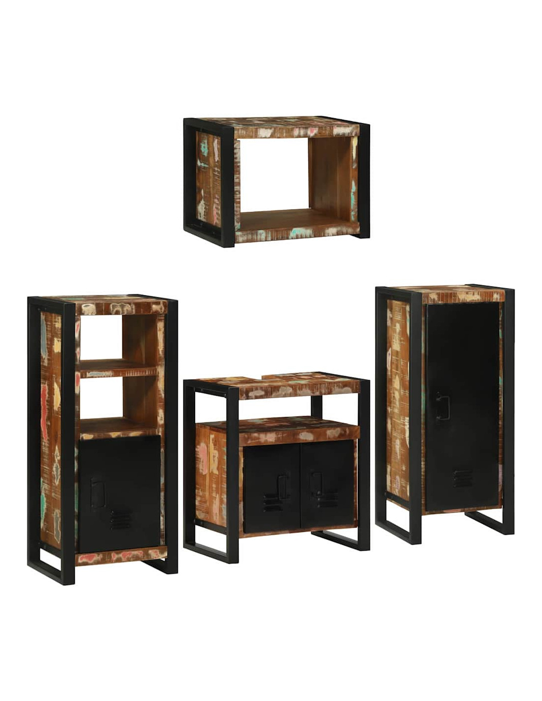 - Caratteristiche / Funzione / Design: Ogni armadietto ha un design elegante con porte a filo che danno un aspetto liscio e rilassato. Questo set unisce elementi moderni con un tocco rustico, rendendo il tuo bagno sia funzionale che alla moda.