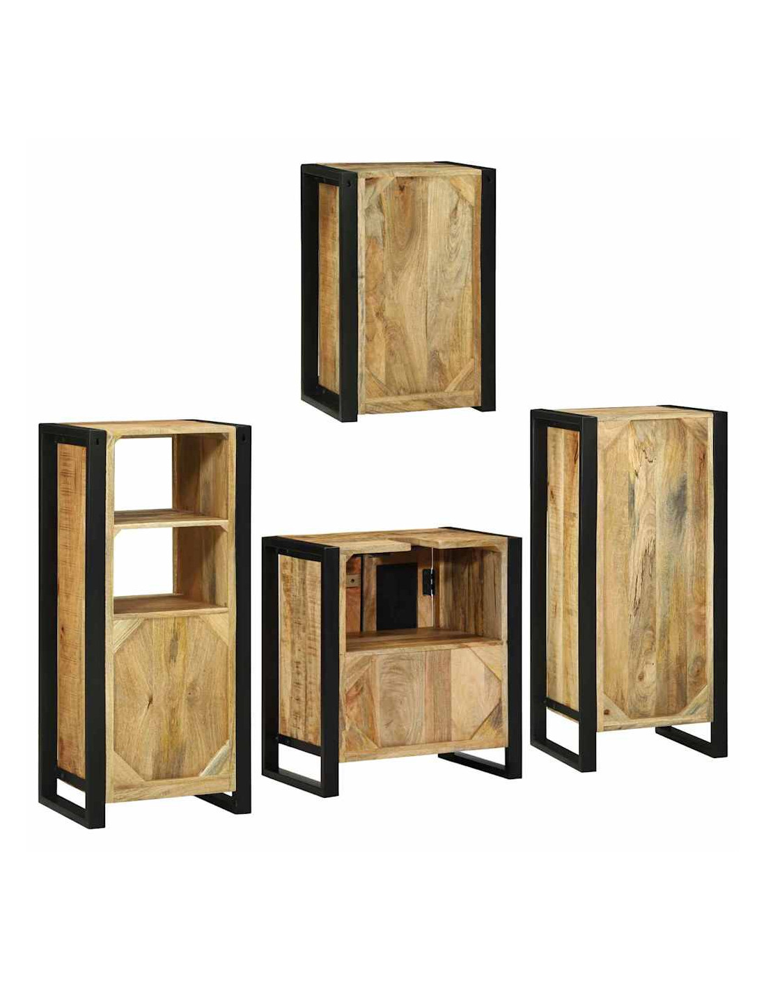 Dai un'occhiata a questo set di mobili da bagno in legno - unisce praticità e fascino rustico, perfetto per dare nuova vita a qualsiasi bagno. La sua forma rettangolare ben realizzata mette in evidenza la bellezza dei materiali naturali, regalando al tuo bagno una sensazione calda e invitante che bilancia stili retro e moderni.