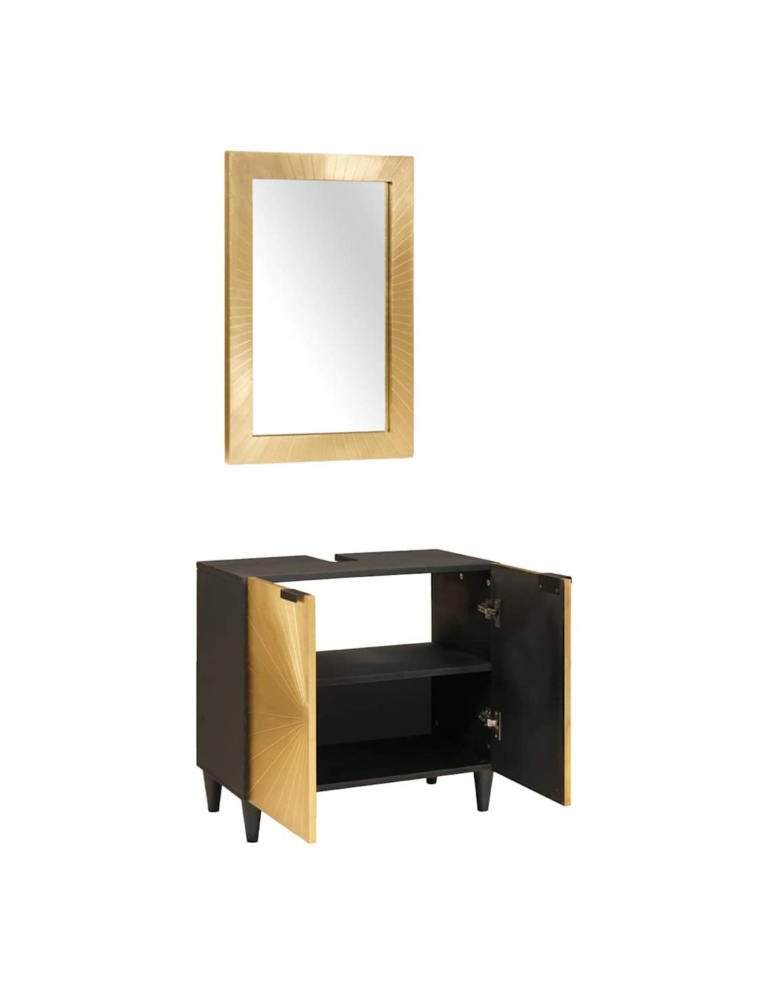 Questo set di mobili per il bagno combina perfettamente funzionalità e stile moderno. Le finiture nere opache e dorate gli conferiscono un aspetto raffinato. Creato per le case di oggi, ha linee pulite e trame che trasformano qualsiasi bagno in un luogo di lusso. Che tu stia ristrutturando un vecchio spazio o partendo da zero, questo set mantiene tutto in ordine e in armonia con il tuo arredamento.
