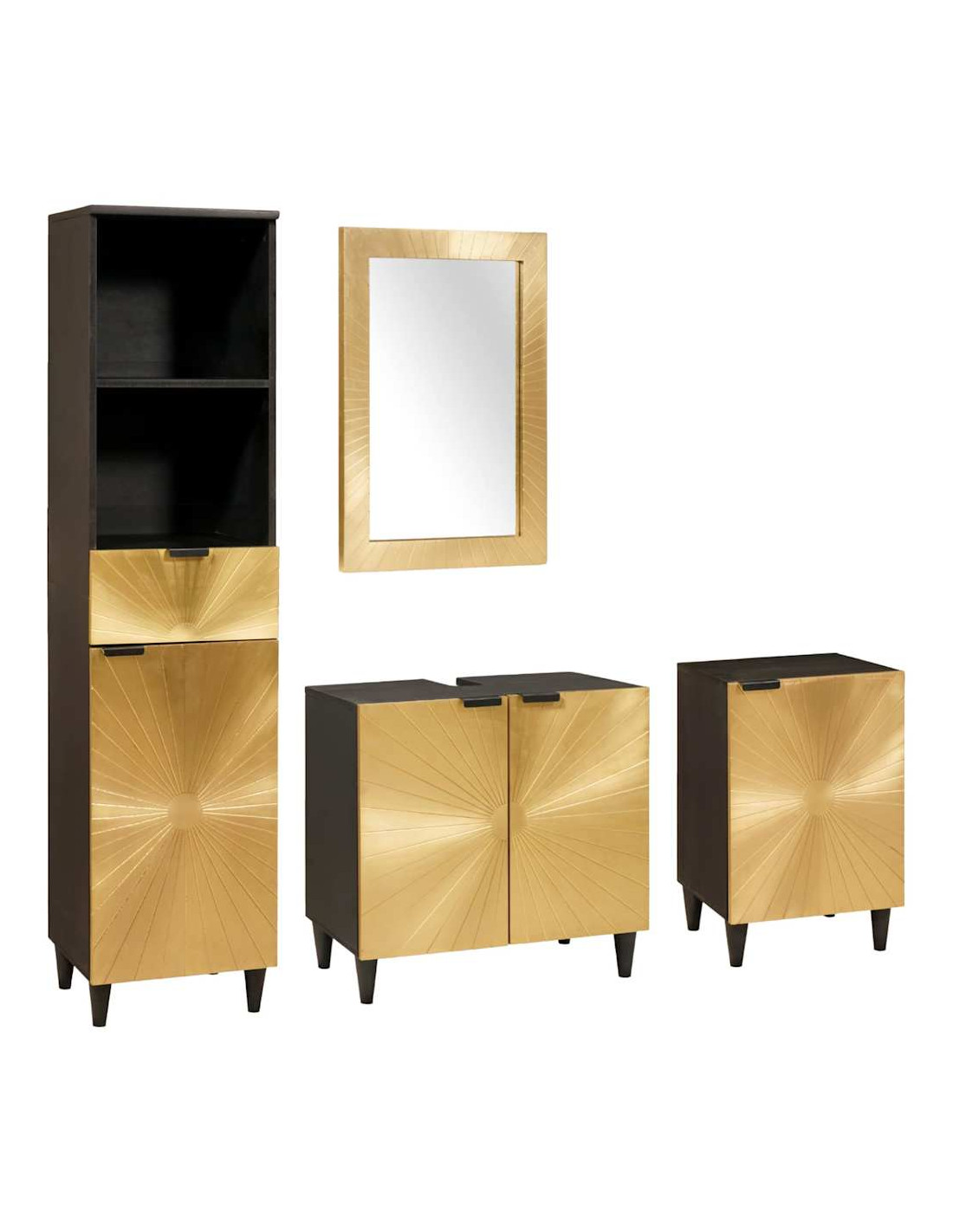 Questo set di mobili per il bagno porta un tocco di eleganza in qualsiasi bagno moderno. Creato con attenzione, il suo look elegante combina colori nero e oro. È pensato per massimizzare lo spazio di stoccaggio mentre migliora l'aspetto del tuo bagno.