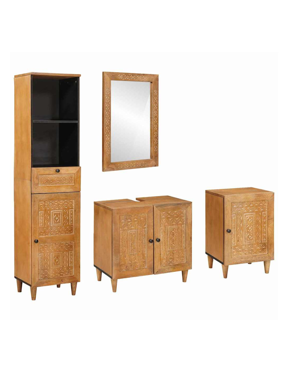 Questo set di mobili da bagno in legno combina uno stile rustico con una funzionalità super utile, rendendo qualsiasi bagno un posto elegante. Costruito in legno di mango solido, si inserisce facilmente in diverse disposizioni, offrendo tanto spazio per riporre tutto e un tocco di bellezza rustica.