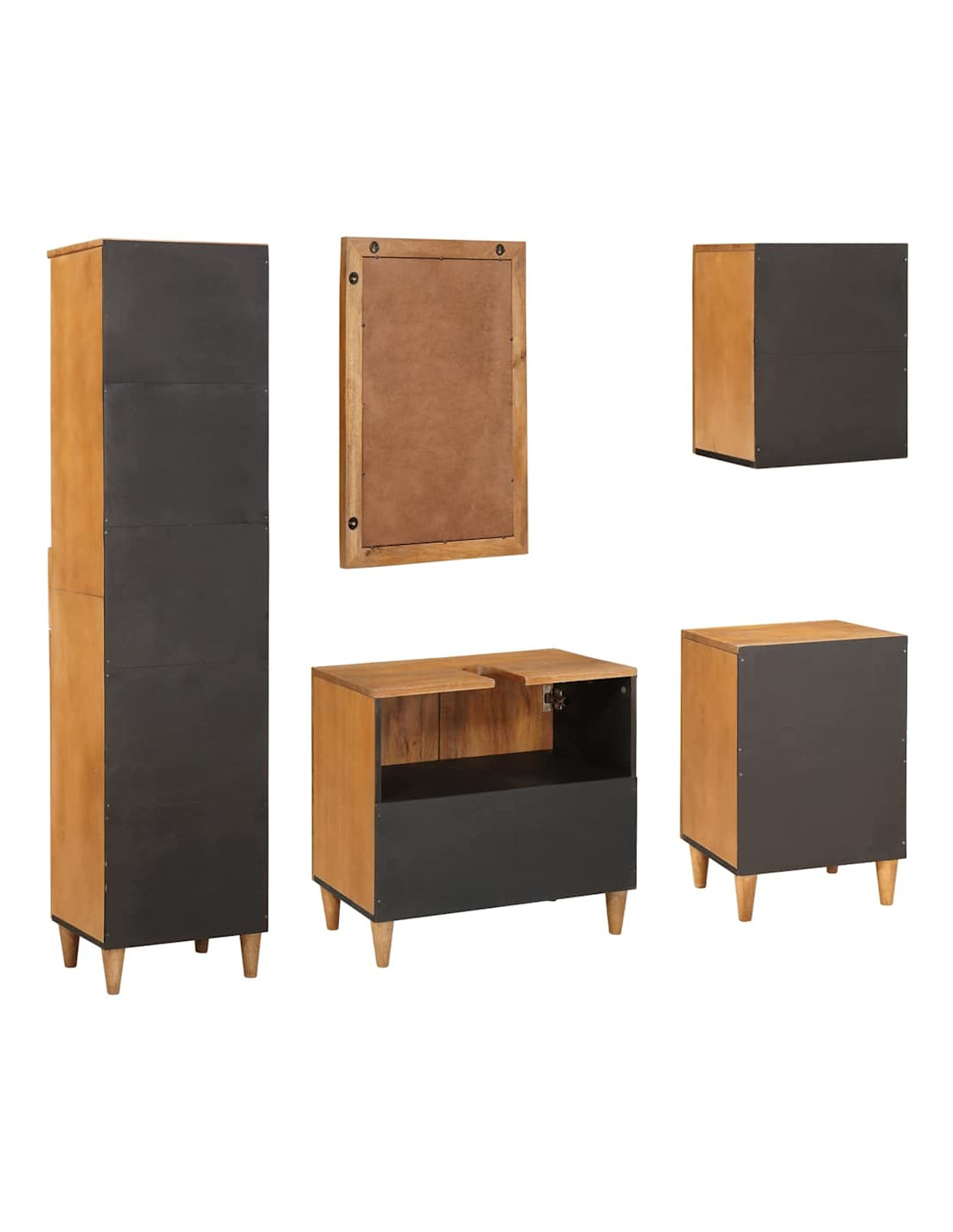 - Legno massello di mango naturale: Questo set è realizzato completamente in legno massello di mango, noto per i suoi toni caldi e la sua resistenza. Le finiture naturali evidenziano le venature uniche, creando un aspetto rustico e affascinante. La sua costruzione robusta assicura una lunga durata, rendendolo una solida aggiunta al tuo bagno.
