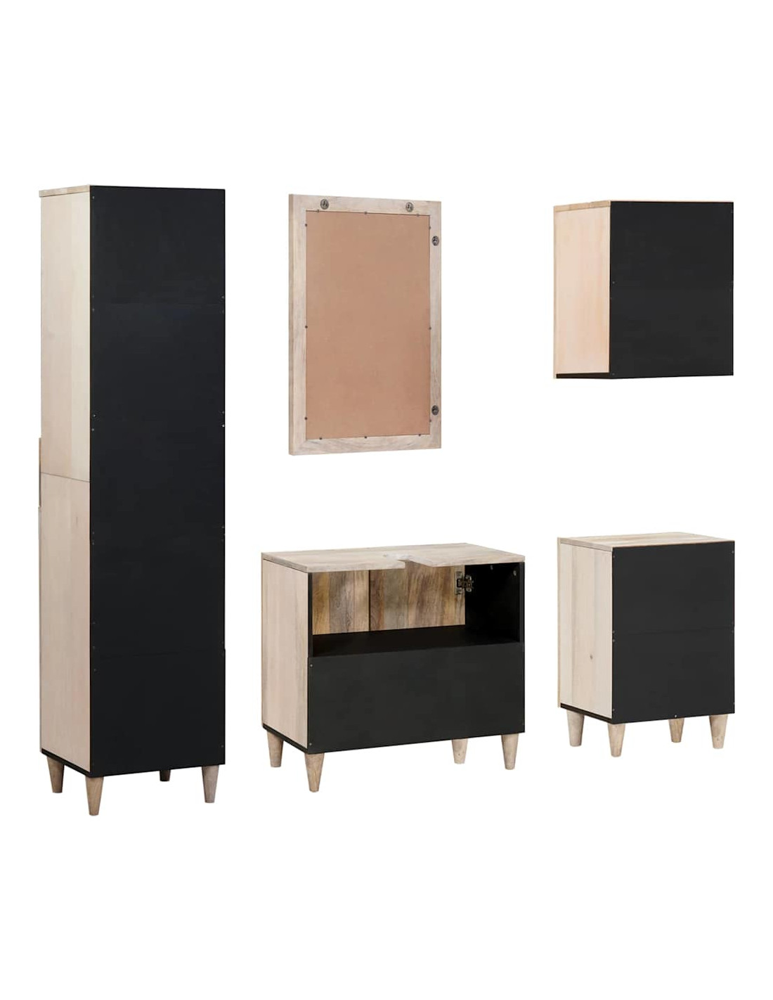Questo set di mobili da bagno in legno mescola fascino naturale e praticità, diventando un elemento distintivo in ogni bagno. Lo stile rustico è dato dal legno massello di mango, che crea un'atmosfera calda e accogliente, elegante e utile per l'uso di tutti i giorni.