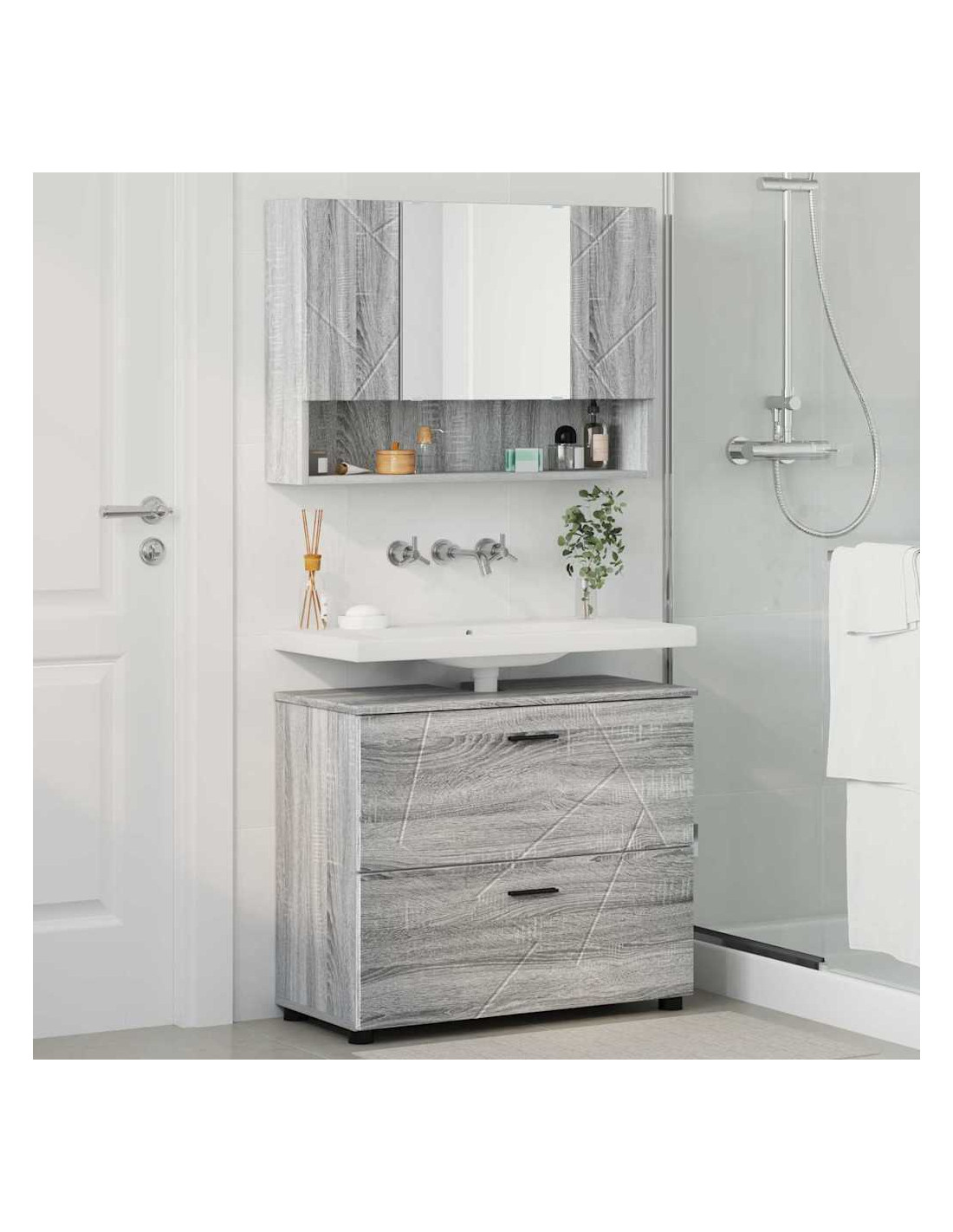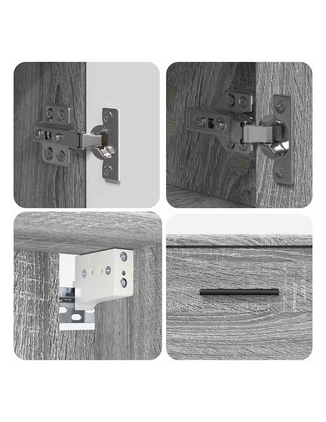 Il Set di Mobili da Bagno in Legno Ingegnerizzato combina perfettamente stile moderno e design pratico. Con linee pulite e un aspetto liscio, questo set migliora l'atmosfera del tuo bagno, fornendo soluzioni di stoccaggio solide. È perfetto per chi ama la semplicità e l'uso intelligente dello spazio, con un look elegante e una robusta struttura in legno ingegnerizzato, ideale per la vita in città. L'atmosfera chic e minimalista del set porta calma al bagno. Con funzionalità come mobili specchiera e ampi scaffali, soddisfa tutti i requisiti per riporre articoli da toeletta, asciugamani e altri oggetti essenziali.