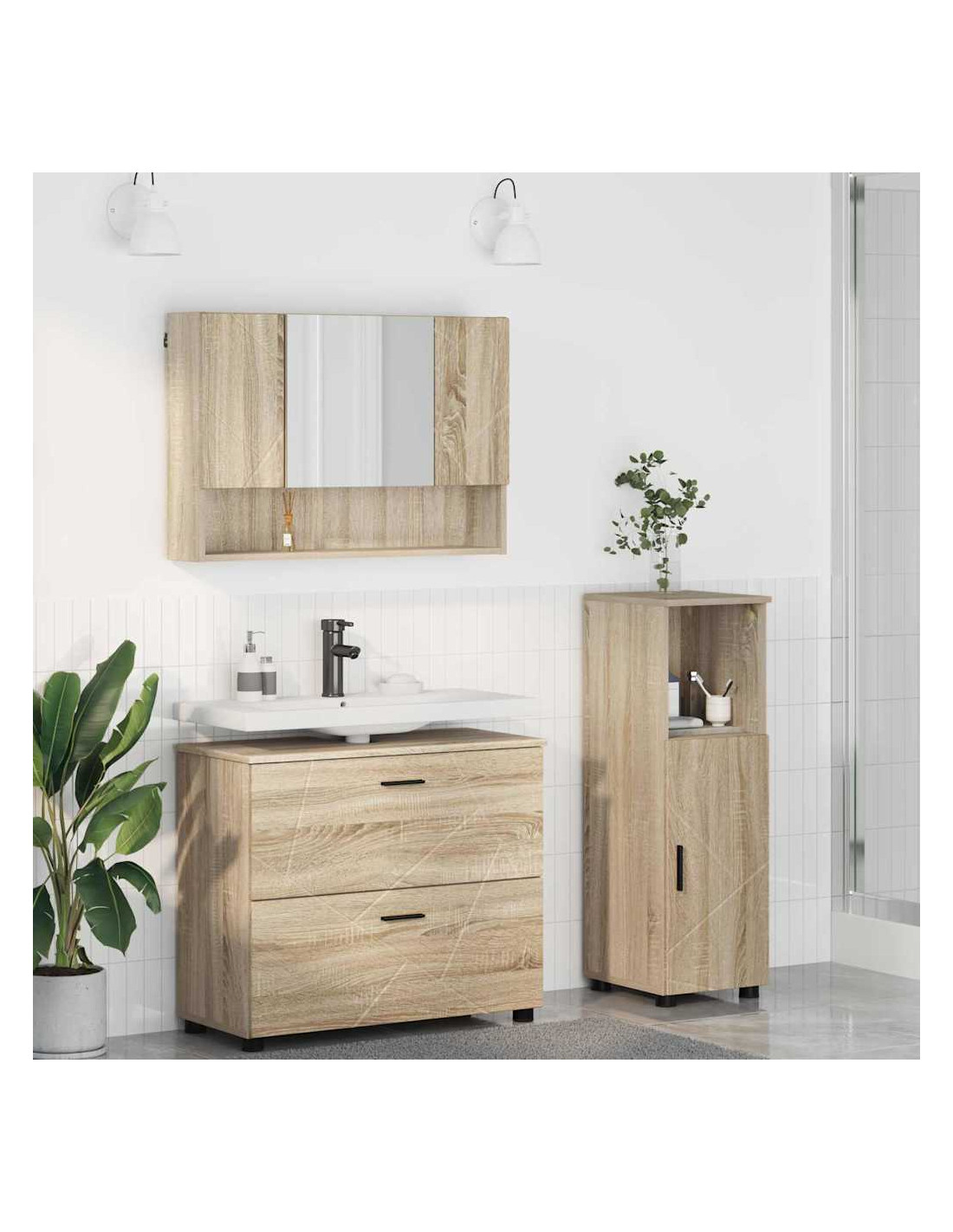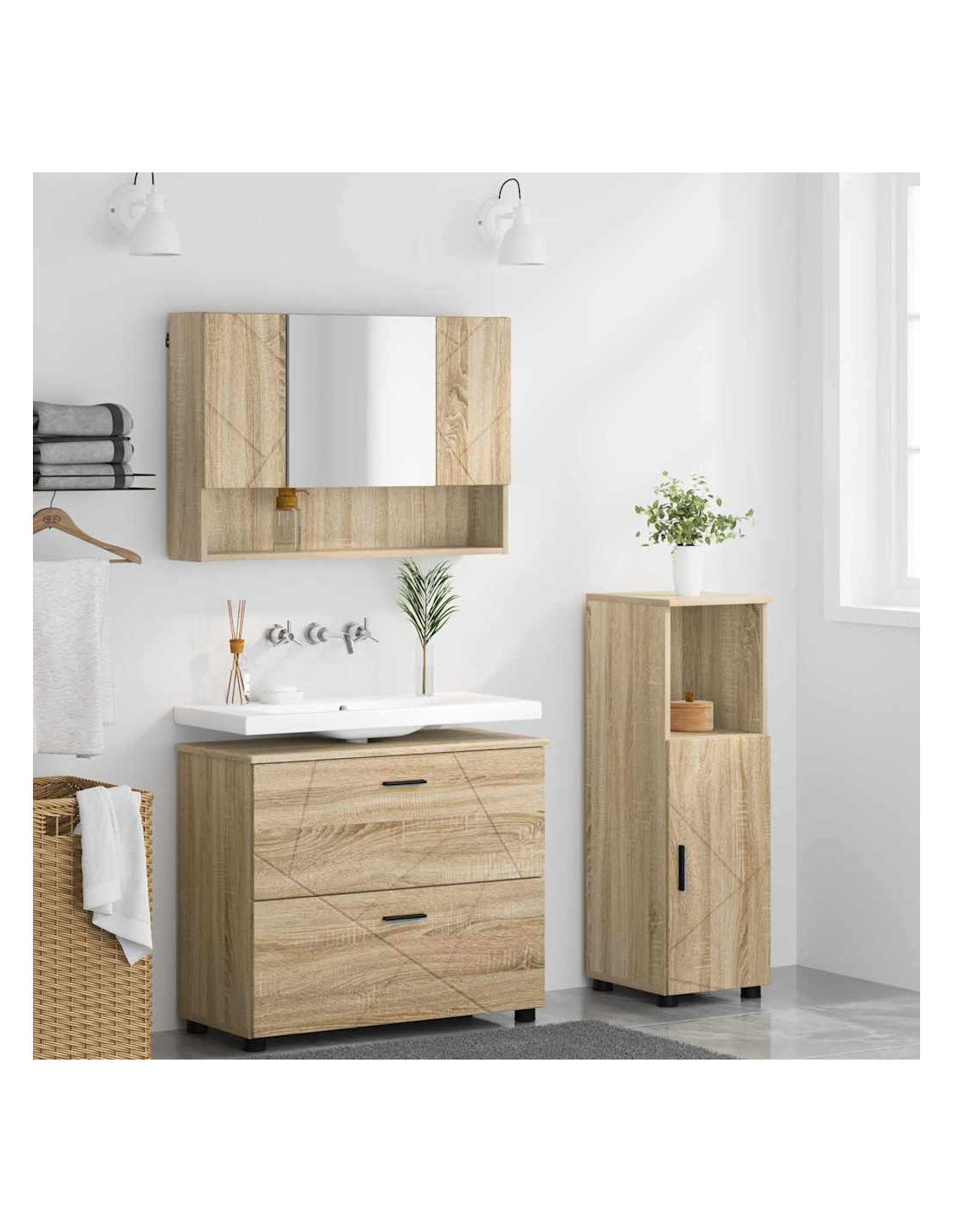 - Componenti Inclusi: Il set comprende un armadietto per lavabo, un armadietto con specchio e un armadietto extra. Questi pezzi offrono un sacco di spazio e sono utili sia per la cura personale che per la decorazione.