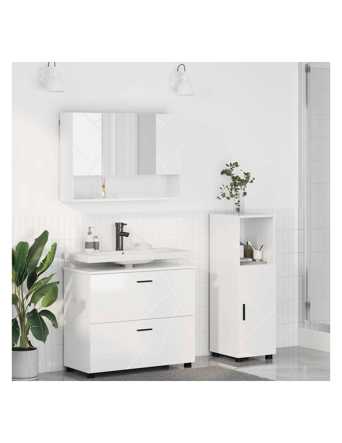 Questo Set di Mobili da Bagno in Legno Ingegnerizzato dà una marcia in più al tuo bagno con il suo stile semplice e pratico. È perfetto se vuoi un ambiente pulito e ordinato, grazie alle sue tonalità neutre e finiture lisce che si sposano bene con qualsiasi design moderno. Troverai un armadietto per lavabo, un armadietto con specchio e tanto spazio per sistemare i tuoi articoli da toeletta.