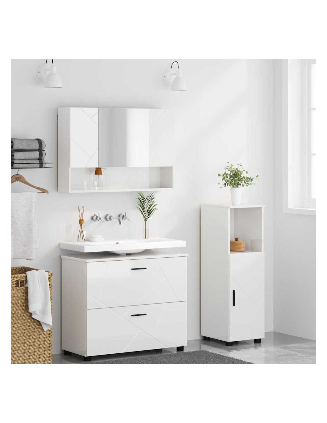 - Componenti Inclusi: Il set comprende un armadietto per lavabo, un armadietto con specchio e un armadietto extra. Questi pezzi offrono un sacco di spazio e sono utili sia per la cura personale che per la decorazione.