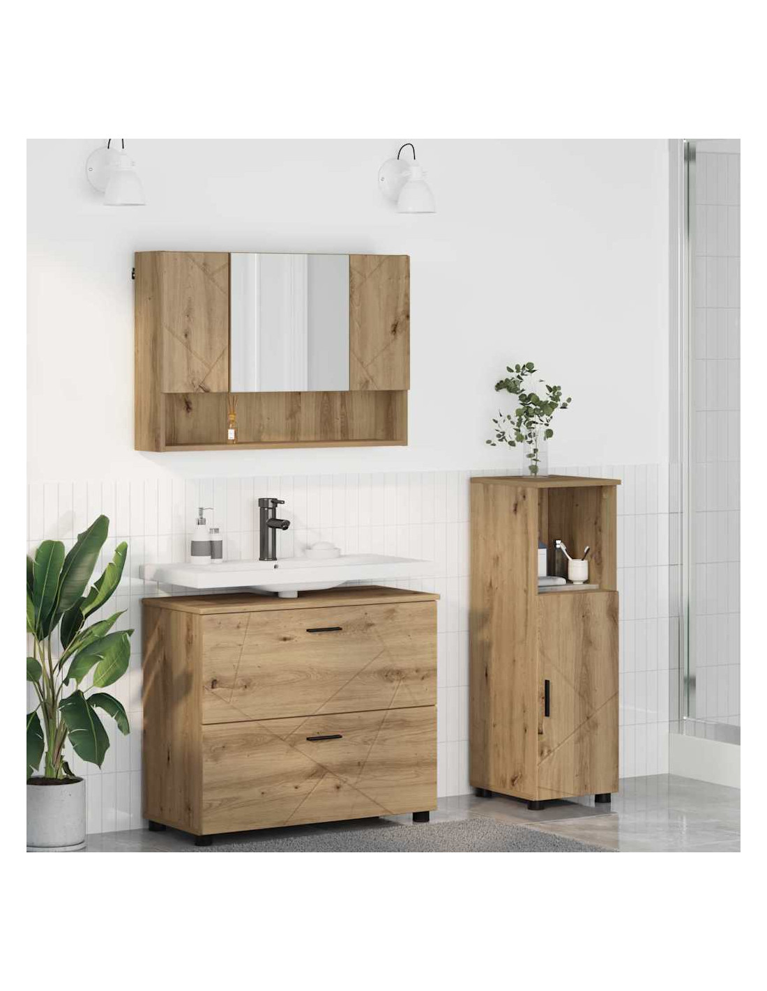 - Componenti Inclusi: Il set comprende un armadietto per lavabo, un armadietto con specchio e un armadietto extra. Questi pezzi offrono un sacco di spazio e sono utili sia per la cura personale che per la decorazione.