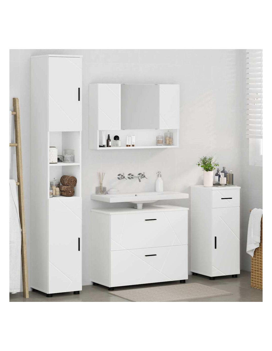Questo elegante e moderno Set di Mobili da Bagno in Legno Ingegnerizzato è un modo intelligente per rinnovare il tuo bagno. Il design semplice e pratico risponde alle esigenze di ogni casa alla ricerca di stile e funzionalità. Alto 192 cm, ha una finitura liscia e opaca, con una forma rettangolare, perfetta per tutti gli stili di bagno. Il suo aspetto elegante e praticità sono ideali per una varietà di esigenze personali o familiari, offrendo ottime opzioni di archiviazione e organizzazione.