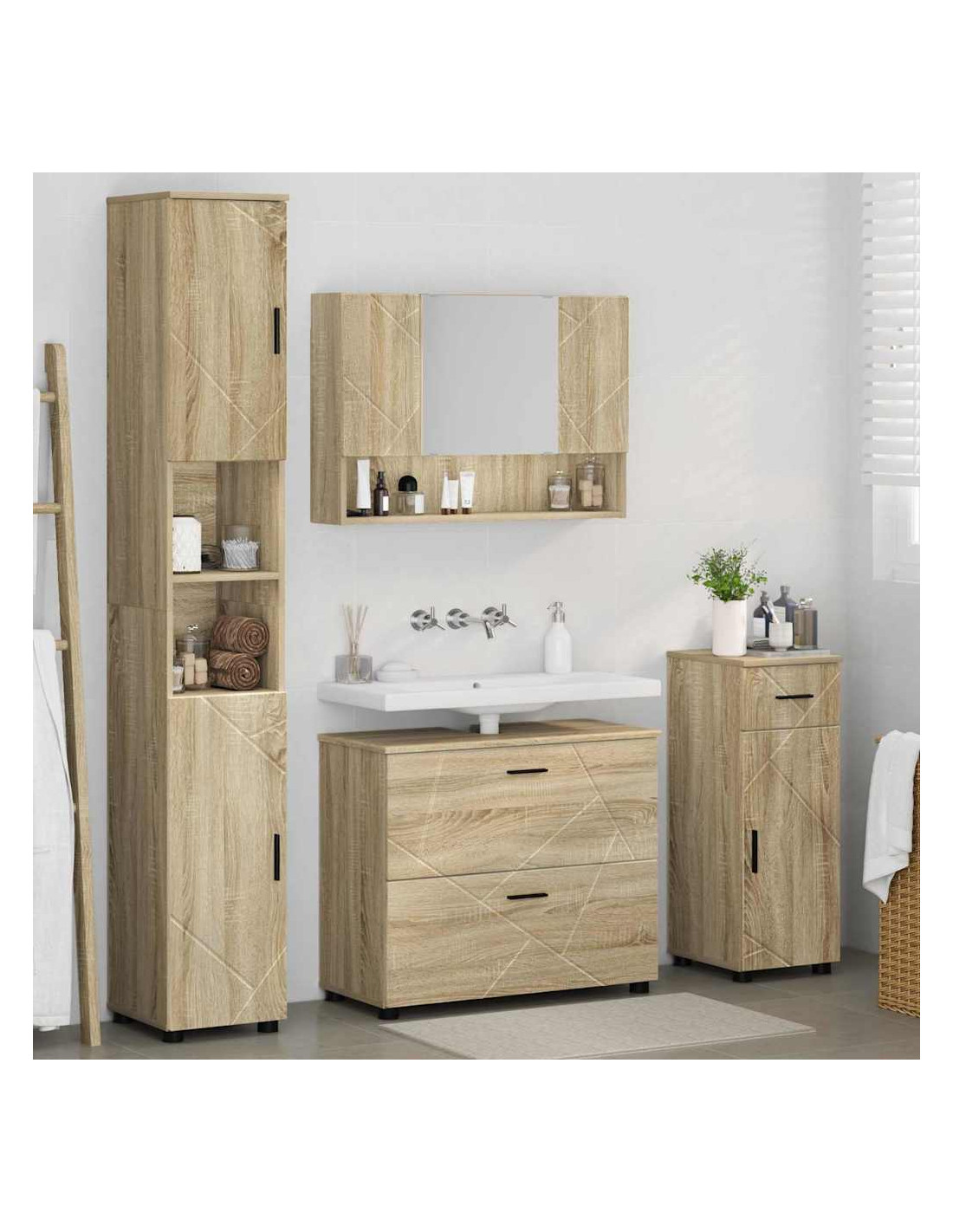 - Materiale di Qualità: Questo set è fatto in legno ingegnerizzato, noto per la sua robustezza e durata. Resiste all'umidità tipica dei bagni, mantenendo il suo look e funzionalità per anni. La superficie liscia è resistente alle macchie e aggiunge un tocco elegante.