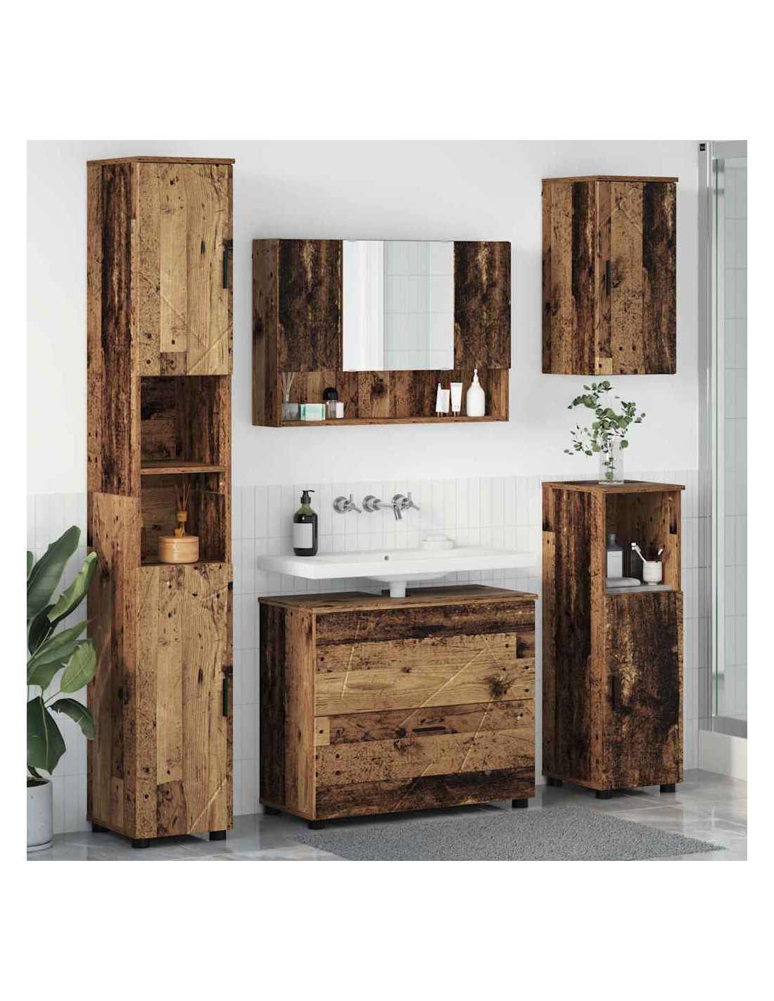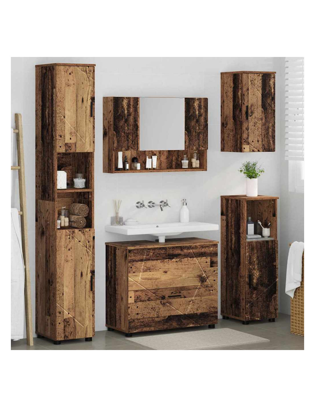 - Componenti di Archiviazione Intelligenti: Il set include un mobile lavabo, un mobile specchio e altri tre armadi progettati per uno stoccaggio intelligente. Ogni pezzo sfrutta lo spazio con funzionalità pratiche come mensole, porte e cassetti, tutti in legno ingegnerizzato robusto per garantire durata.