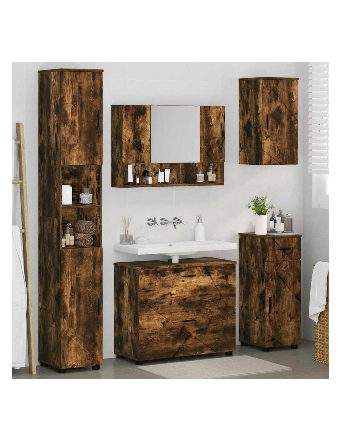 - Tanto spazio di archiviazione: Con armadi e cassetti ampi, questo set tiene tutto in ordine e facilmente accessibile. Che si tratti di prodotti per la cura personale, asciugamani o materiali per la pulizia, avrai sempre tutto a portata di mano senza disordine.