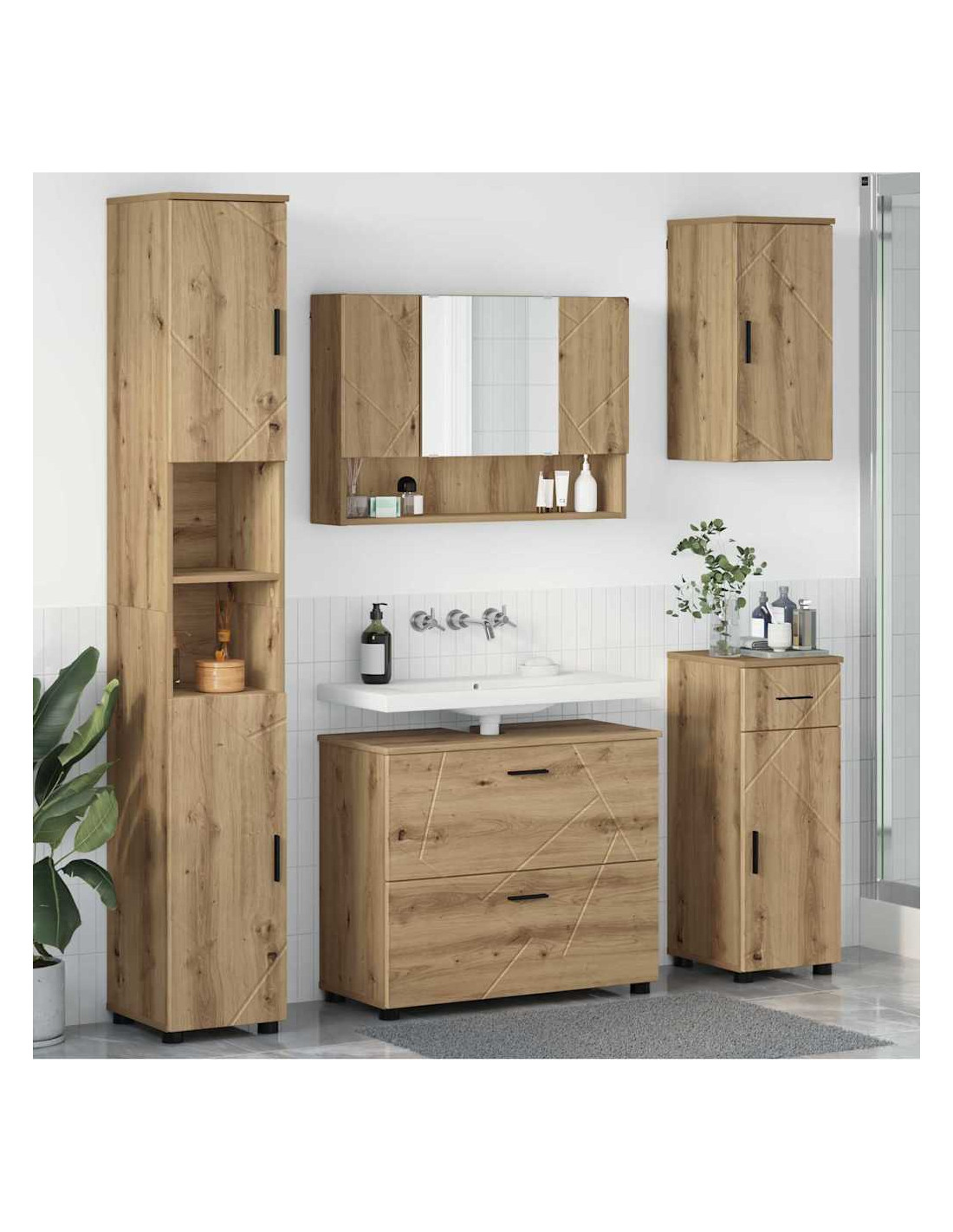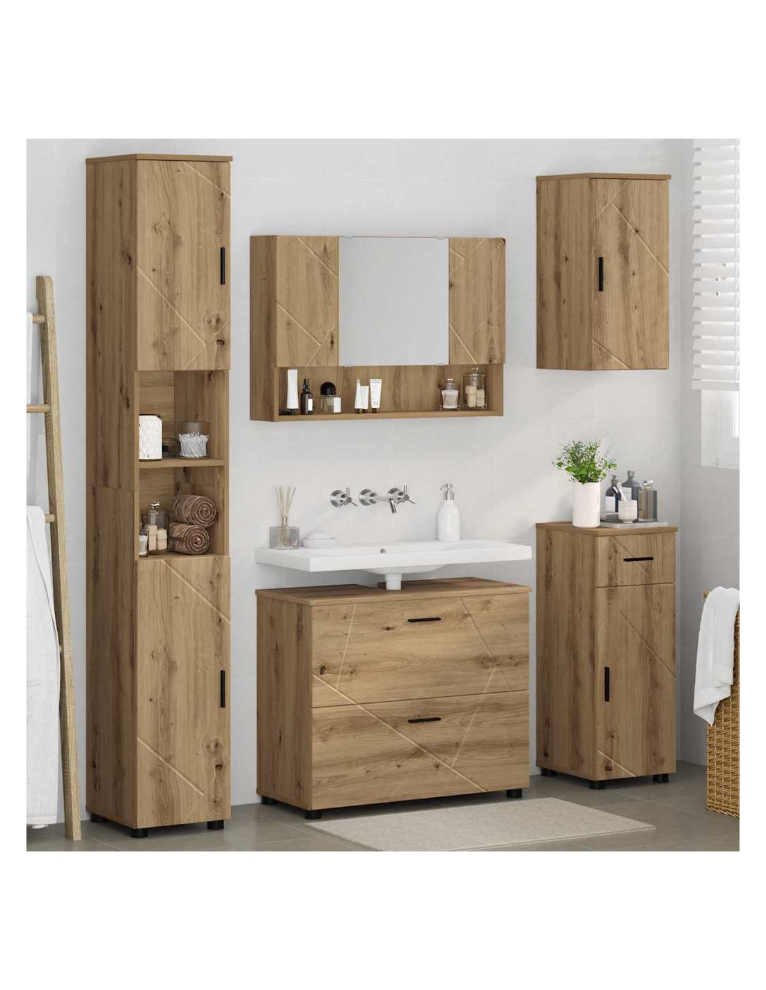 Questo set di mobili da bagno in legno ingegnerizzato è un modo semplice e chic per dare una rinfrescata al tuo bagno. Ha uno stile minimalista e pratico, perfetto per chi ama spazi puliti e senza ingombri. Include armadi e specchi in legno, creando un ambiente funzionale dove bellezza e utilità si incontrano. Immagina un bagno elegante e organizzato, con tanto spazio per tutto senza perdere lo stile.