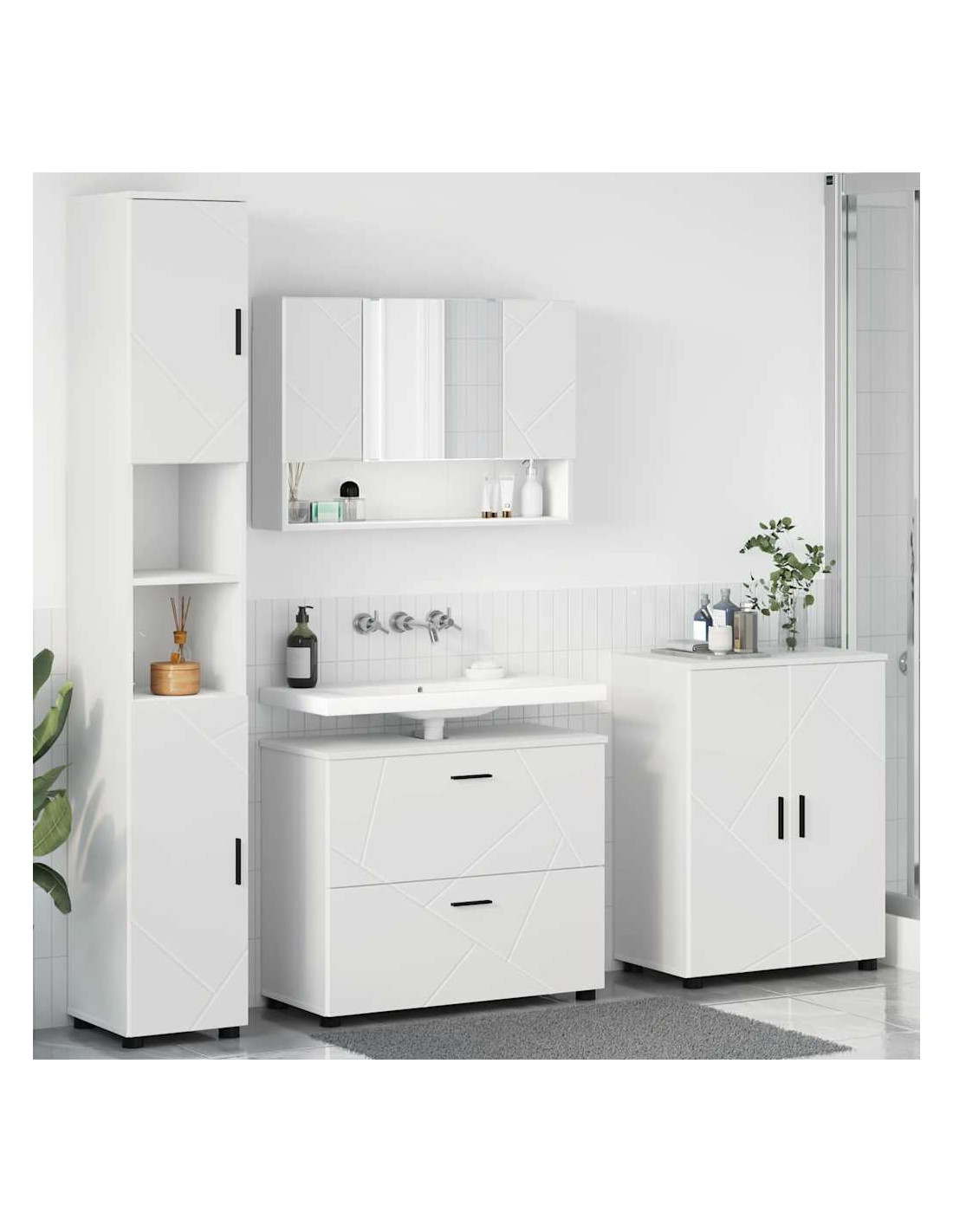- Tanto spazio di archiviazione: Con un mobile lavabo, un mobile specchio e vari armadietti, hai tutto lo spazio che serve per organizzare prodotti per la cura personale e articoli per la pulizia. Ogni pezzo è progettato per mantenere tutto in ordine.