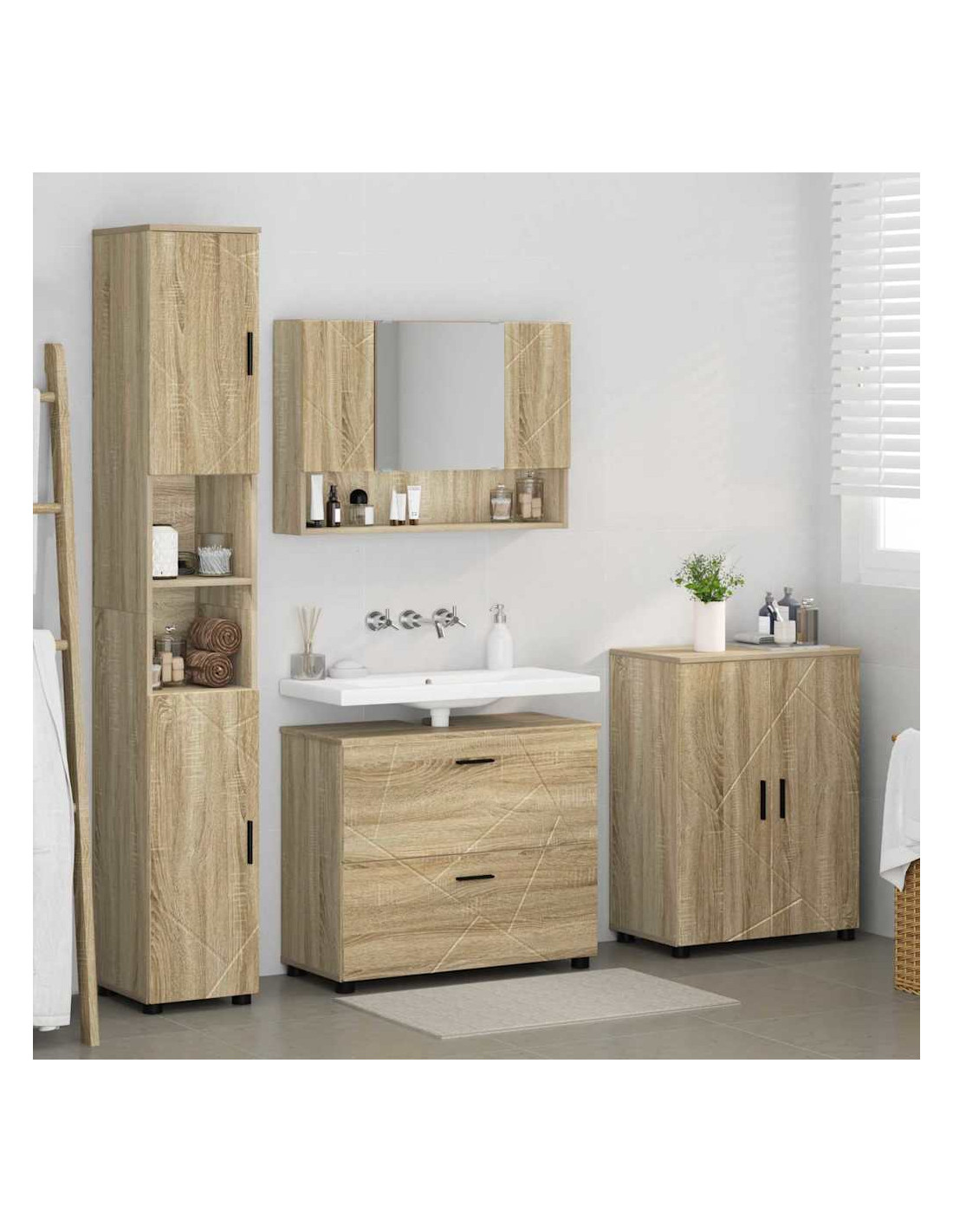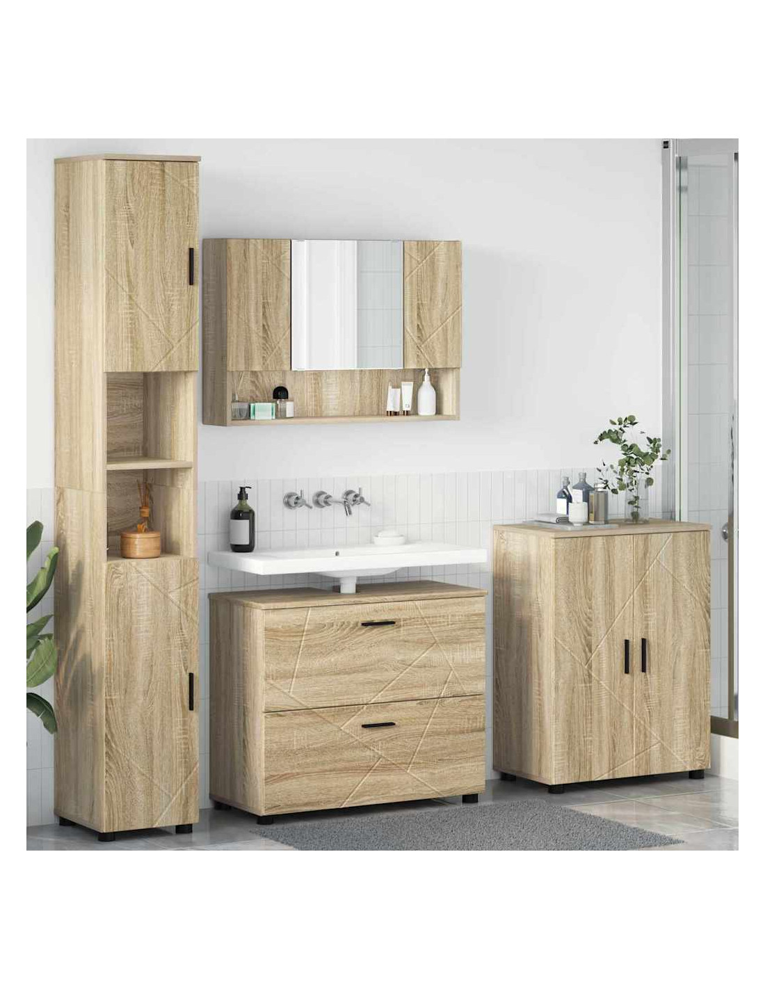 Il set di mobili da bagno in legno ingegnerizzato unisce praticità a un look moderno, offrendoti un modo elegante per sistemare tutto il necessario del bagno. Con il suo design sleek e minimalista, è perfetto per qualsiasi bagno contemporaneo, aumentando sia la funzionalità che lo stile del tuo spazio. Ottimo per single o famiglie che vogliono dare una rinfrescata al bagno mantenendolo pratico.