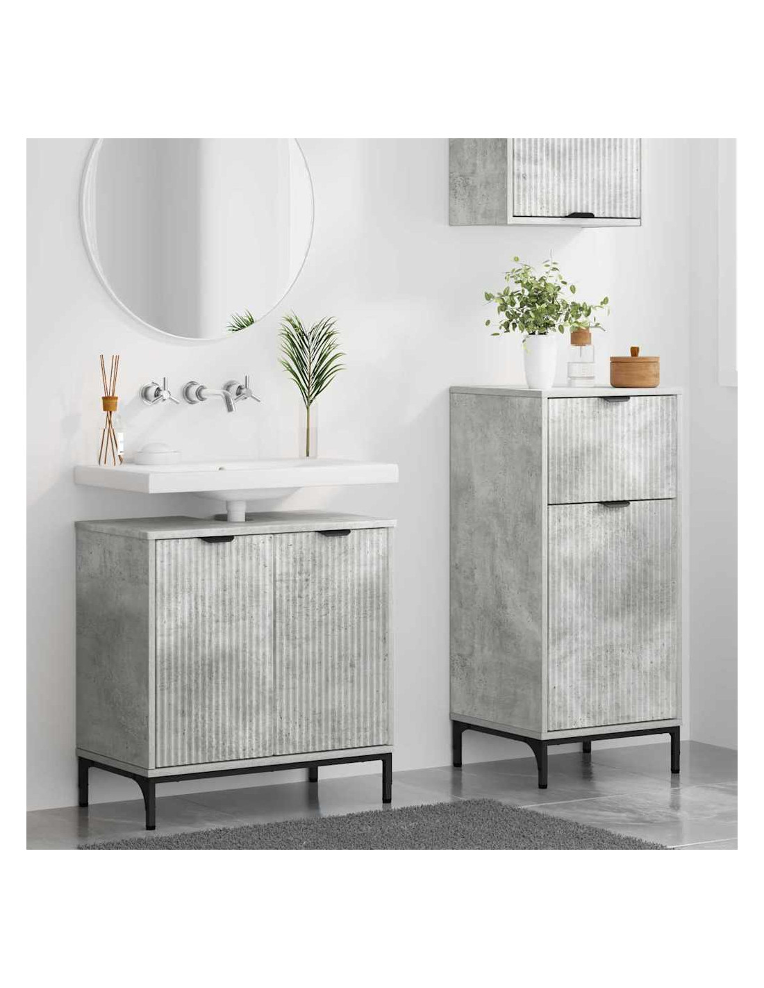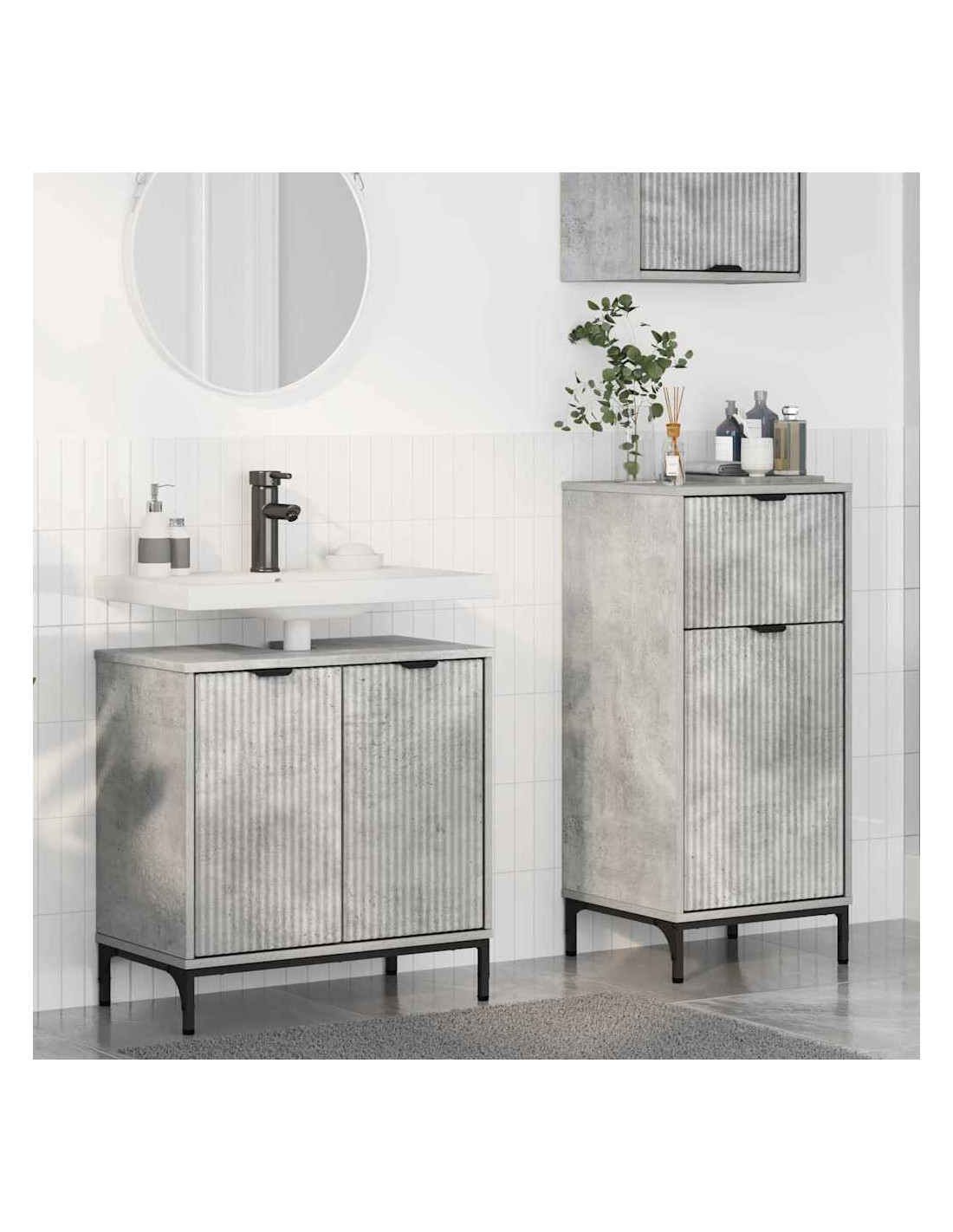 Questo set di mobili da bagno in legno ingegnerizzato ha un comò alto e una credenza, il che lo rende perfetto per organizzare il bagno. Con la sua superficie liscia e uno stile moderno, si integra perfettamente negli ambienti contemporanei, regalando un aspetto elegante e raffinato. Ideale per chi vuole tenere in ordine con stile, il suo design rettangolare si abbina facilmente agli accessori già presenti, creando un'atmosfera accogliente nel bagno.