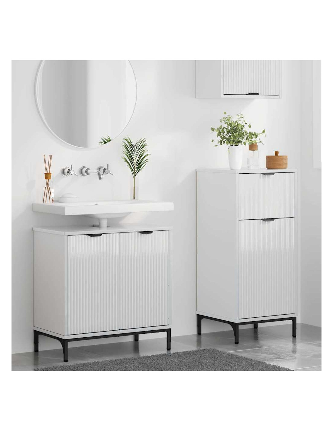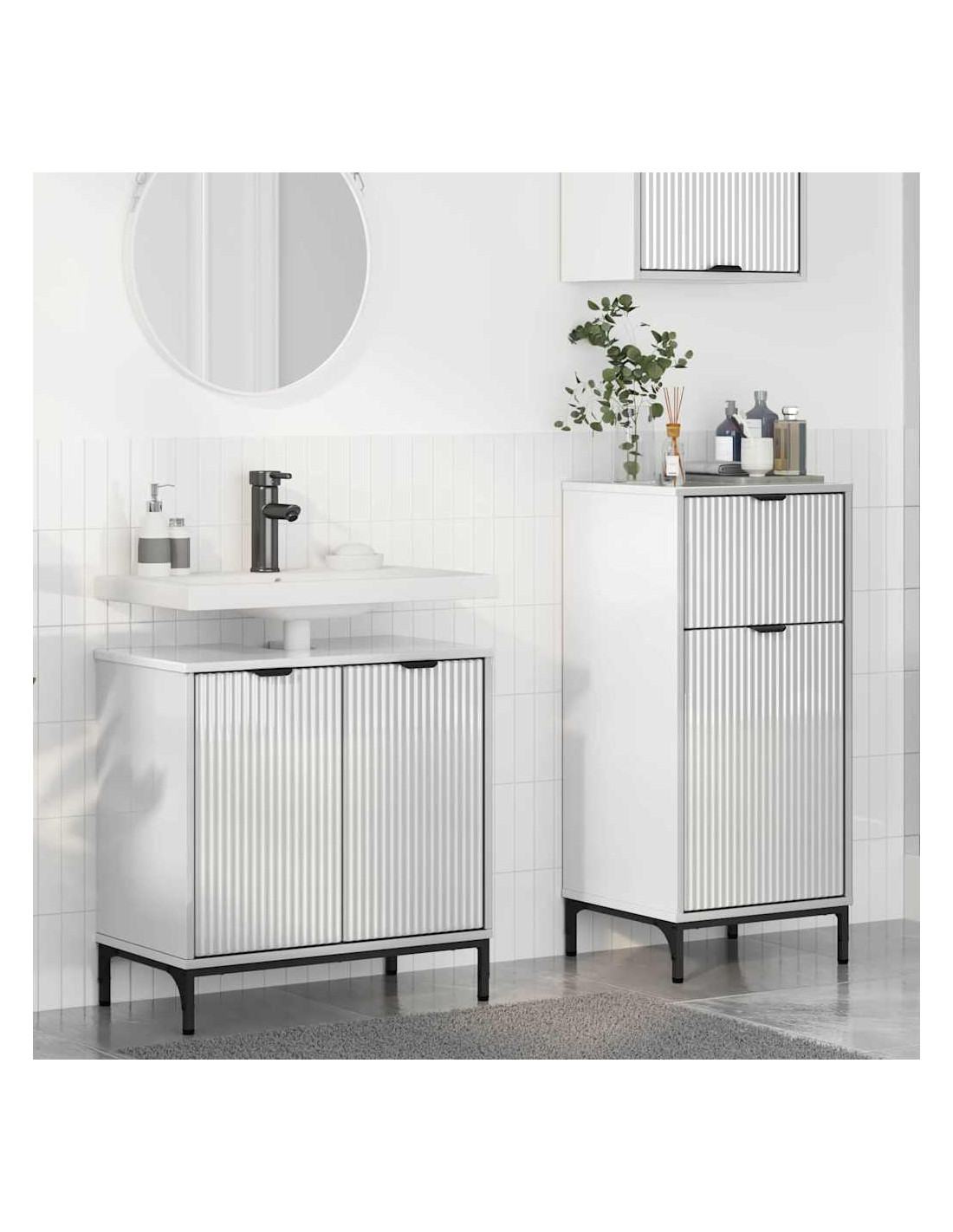 Questo set di mobili da bagno in legno ingegnerizzato ha un comò alto e una credenza, il che lo rende perfetto per organizzare il bagno. Con la sua superficie liscia e uno stile moderno, si integra perfettamente negli ambienti contemporanei, regalando un aspetto elegante e raffinato. Ideale per chi vuole tenere in ordine con stile, il suo design rettangolare si abbina facilmente agli accessori già presenti, creando un'atmosfera accogliente nel bagno.