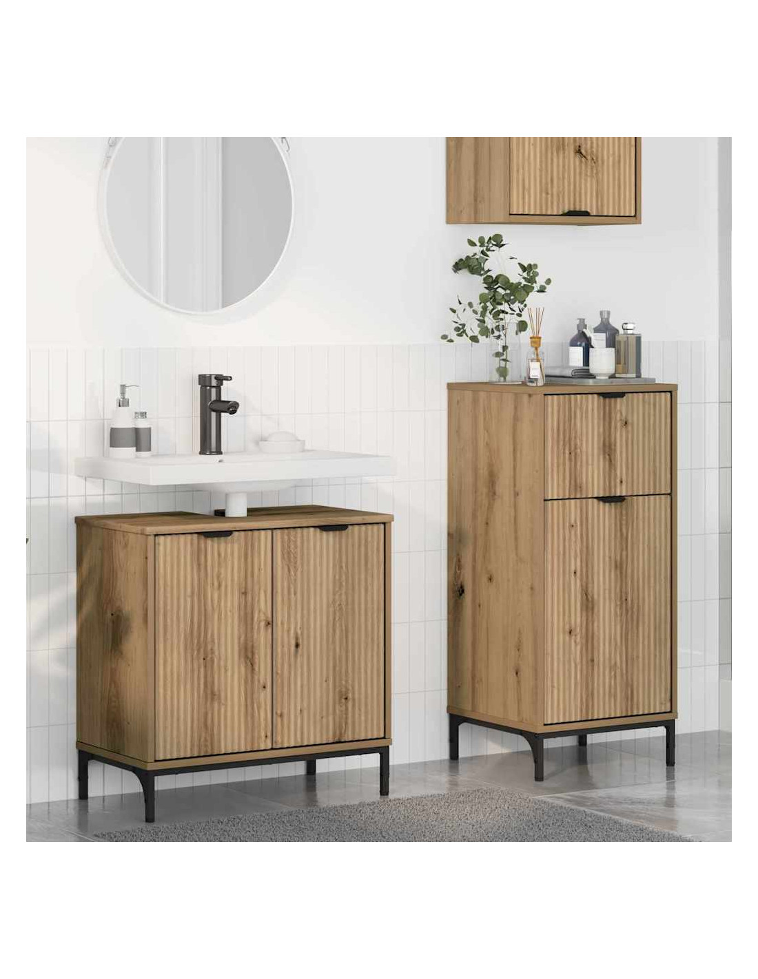 Questo set di mobili da bagno in legno ingegnerizzato ha un comò alto e una credenza, il che lo rende perfetto per organizzare il bagno. Con la sua superficie liscia e uno stile moderno, si integra perfettamente negli ambienti contemporanei, regalando un aspetto elegante e raffinato. Ideale per chi vuole tenere in ordine con stile, il suo design rettangolare si abbina facilmente agli accessori già presenti, creando un'atmosfera accogliente nel bagno.