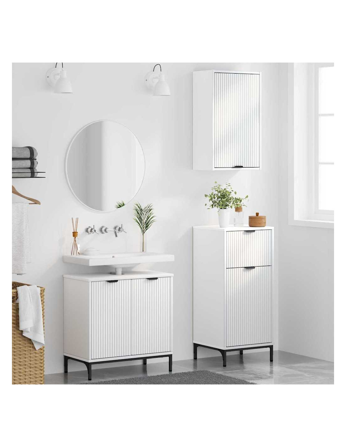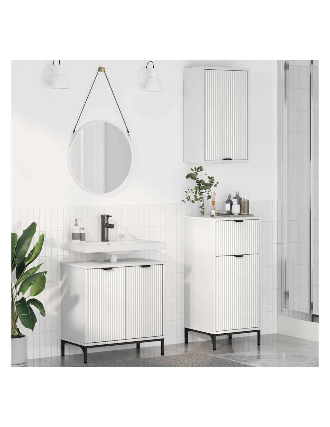 - Componenti Inclusi: Questo set comprende un mobile per lavabo e due armadi, tutti con porte a cerniera e mensole pratiche per riporre i cosmetici. Le mensole facilitano l'organizzazione degli oggetti per il bagno.