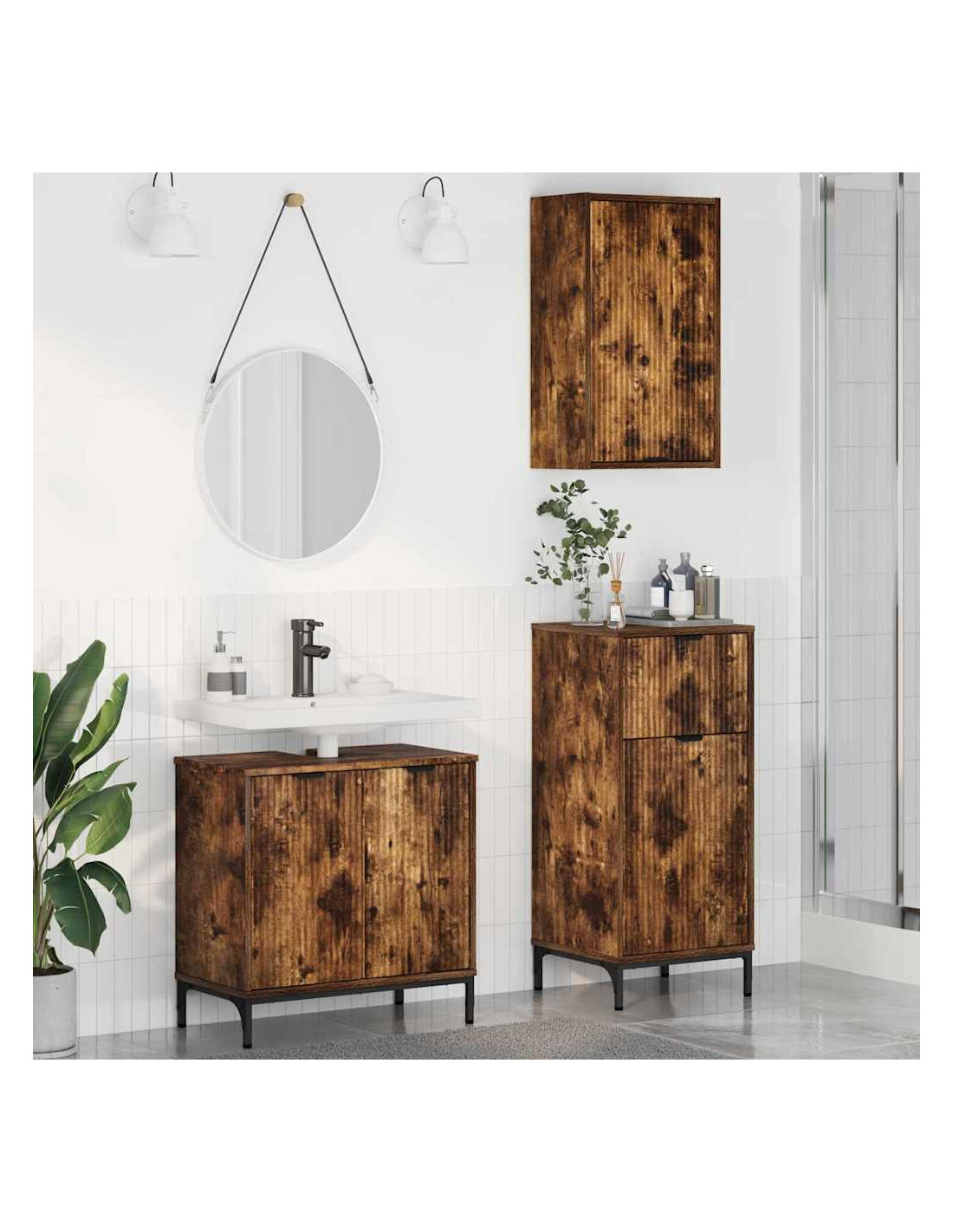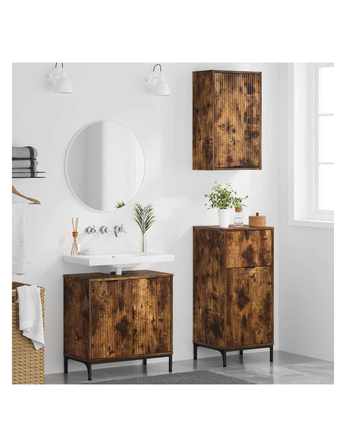 - Componenti Inclusi: Questo set comprende un mobile per lavabo e due armadi, tutti con porte a cerniera e mensole pratiche per riporre i cosmetici. Le mensole facilitano l'organizzazione degli oggetti per il bagno.