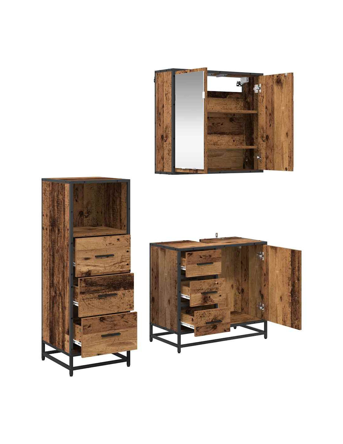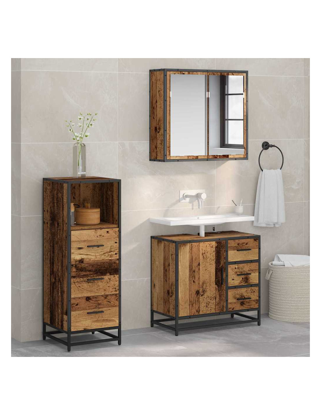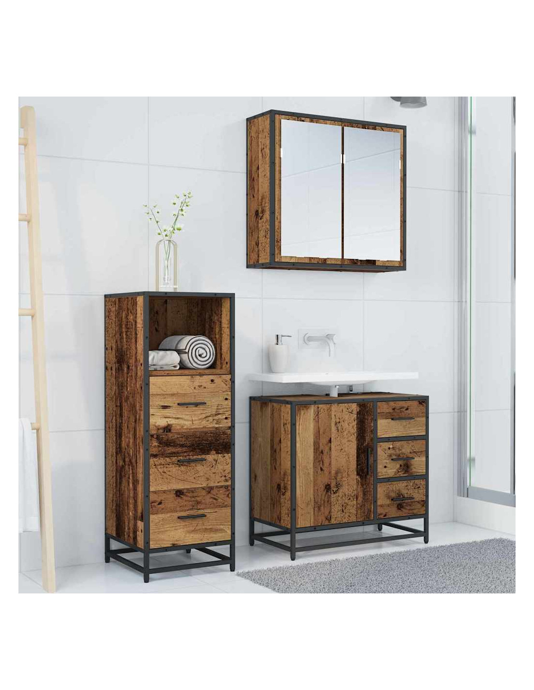 Questo set di mobili per il bagno unisce stile e funzionalità industriali, portando un tocco di charme urbano al tuo spazio. Comprende armadi di stoccaggio e uno specchio, con telai in acciaio nero che contrastano con il legno ingegnerizzato, dando un'atmosfera grezza ma raffinata al tuo bagno.