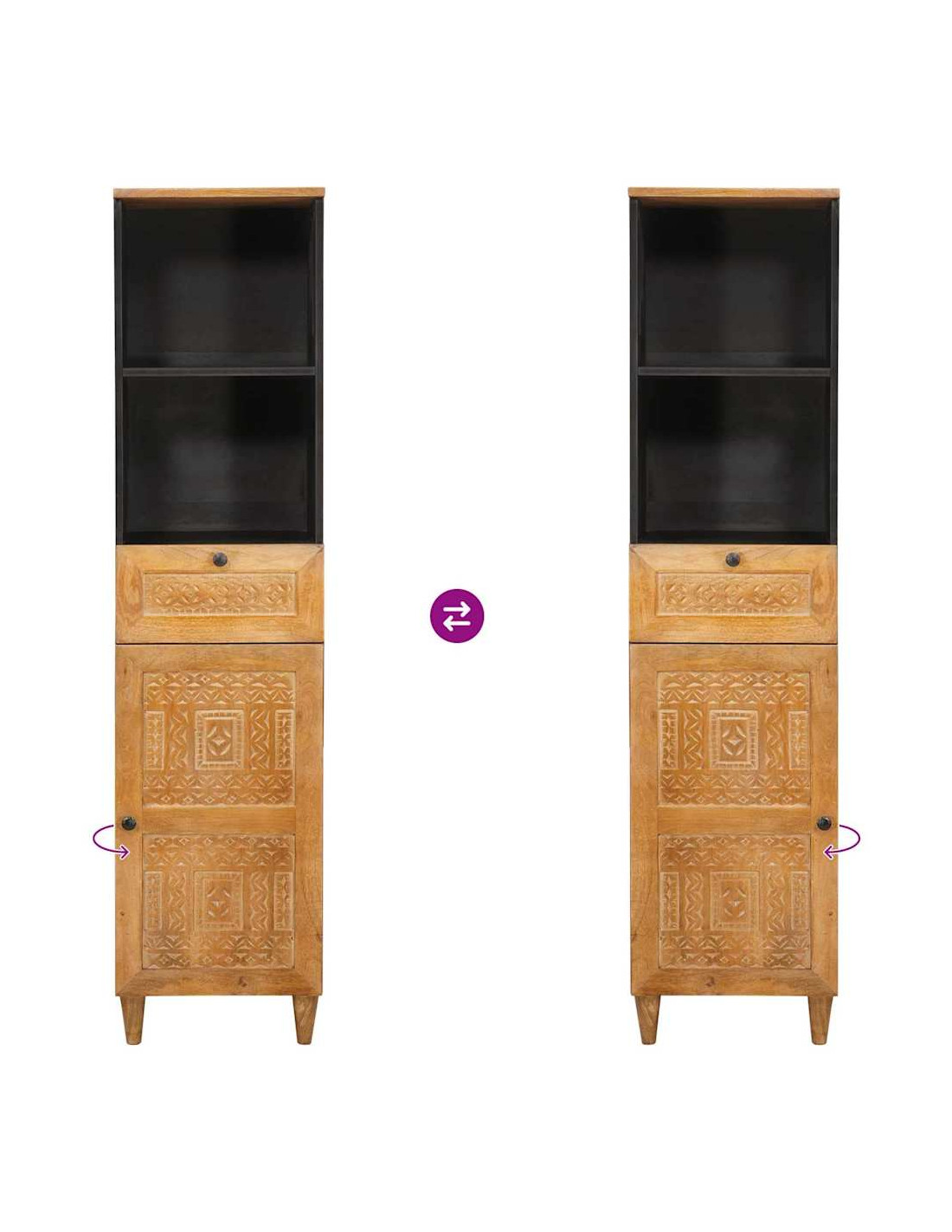 - Legno Massello di Mango: Questo mobile è realizzato in legno massello di mango, famoso per la sua bella venatura e calore. Non solo è esteticamente piacevole, ma è anche costruito per durare, rendendo ogni pezzo unico.