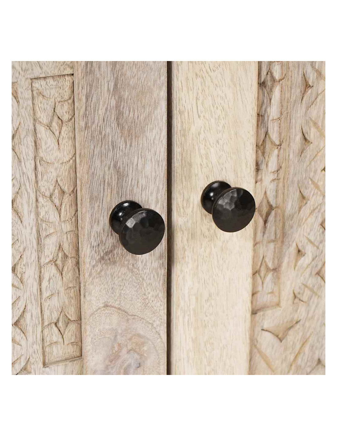- Maniglie e Gambe Eleganti: I pomelli e le gambe quadrate hanno una finitura nera chic, ideale da abbinare alle tonalità naturali del legno. Questo dettaglio di stile aggiunge fascino rustico mantenendolo moderno.