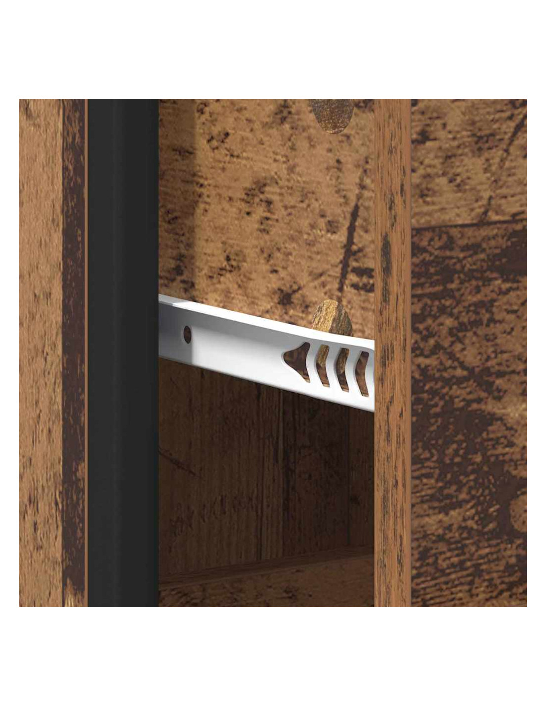 - Caratteristiche / Funzione / Design: Questo armadietto si distingue per il suo ampio spazio di archiviazione, perfetto per tenere tutto in ordine e pulito. Lo stile industriale è evidenziato dal telaio nero opaco e dalla superficie testurizzata, creando un forte impatto visivo.