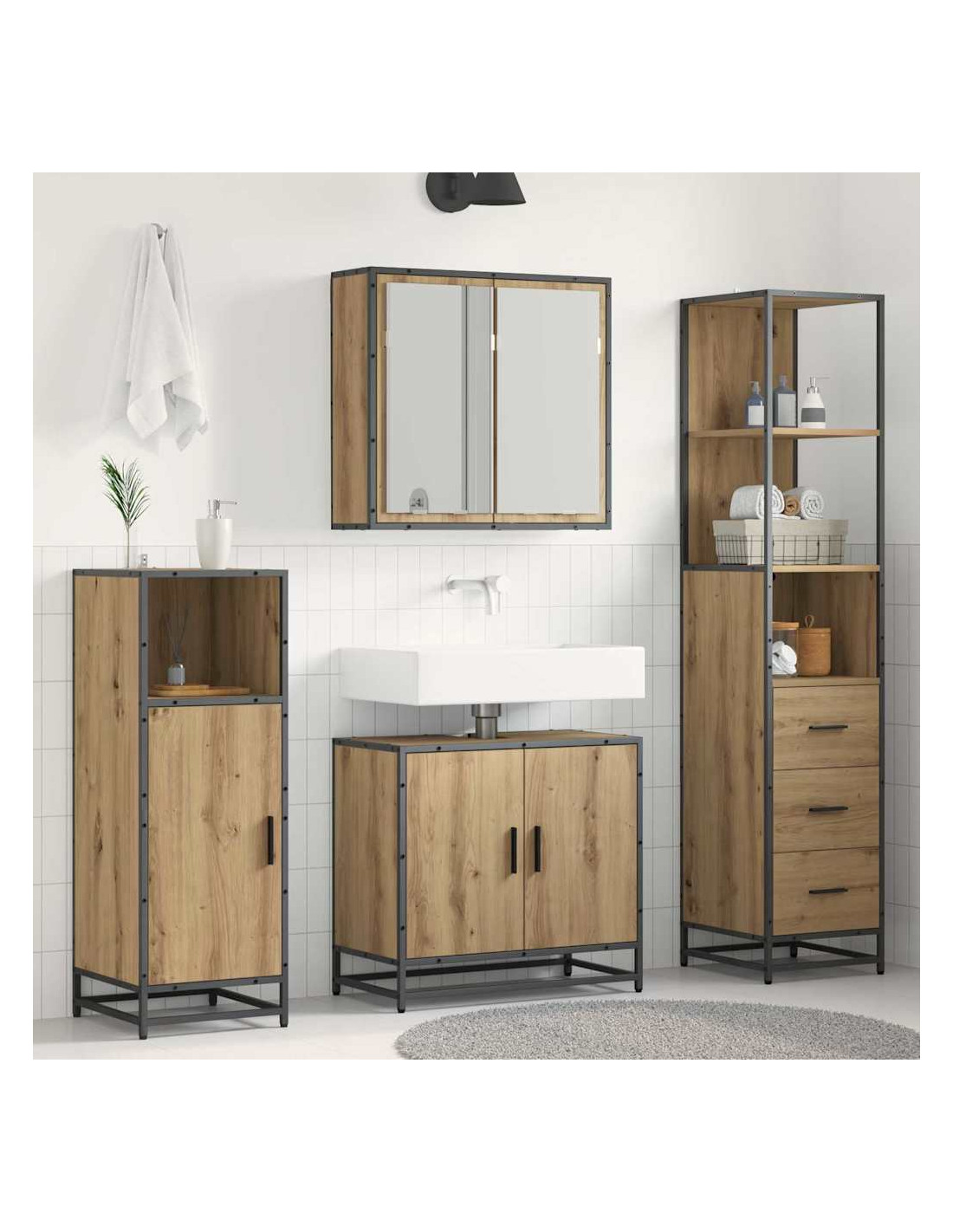 Questo Set di Mobili da Bagno in Legno è il mix ideale di stile e praticità, perfetto per ravvivare i bagni moderni. Con un look pulito e linee nette, questo set dà un tocco in più al tuo bagno e ottimizza lo spazio.